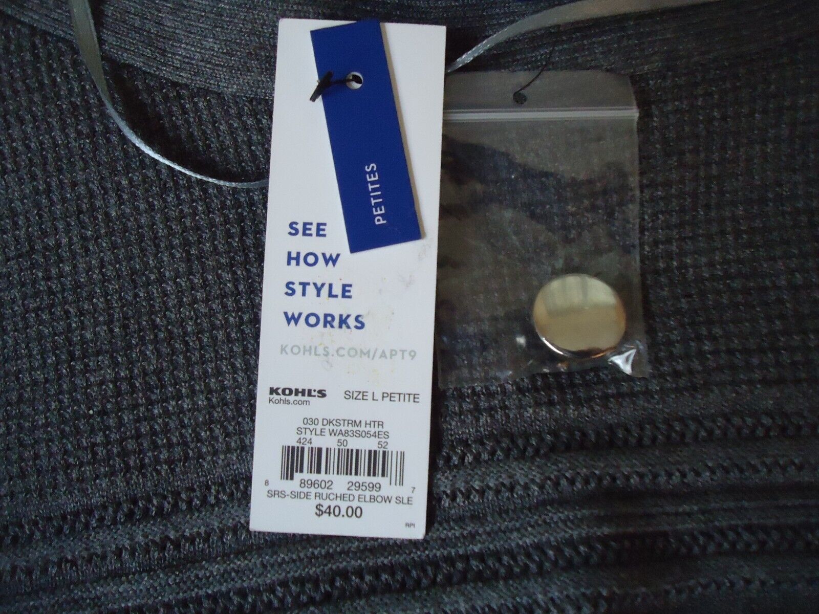Here is a Womens " NWT " Apt 9 Size PL Gray Short Sleeve Top " Beautiful Top ".If you have any concerns or questions about this item(s) please ask before bidding / purchasing because this item(s) is being SOLD AS IS.Thank You.-(CL14)