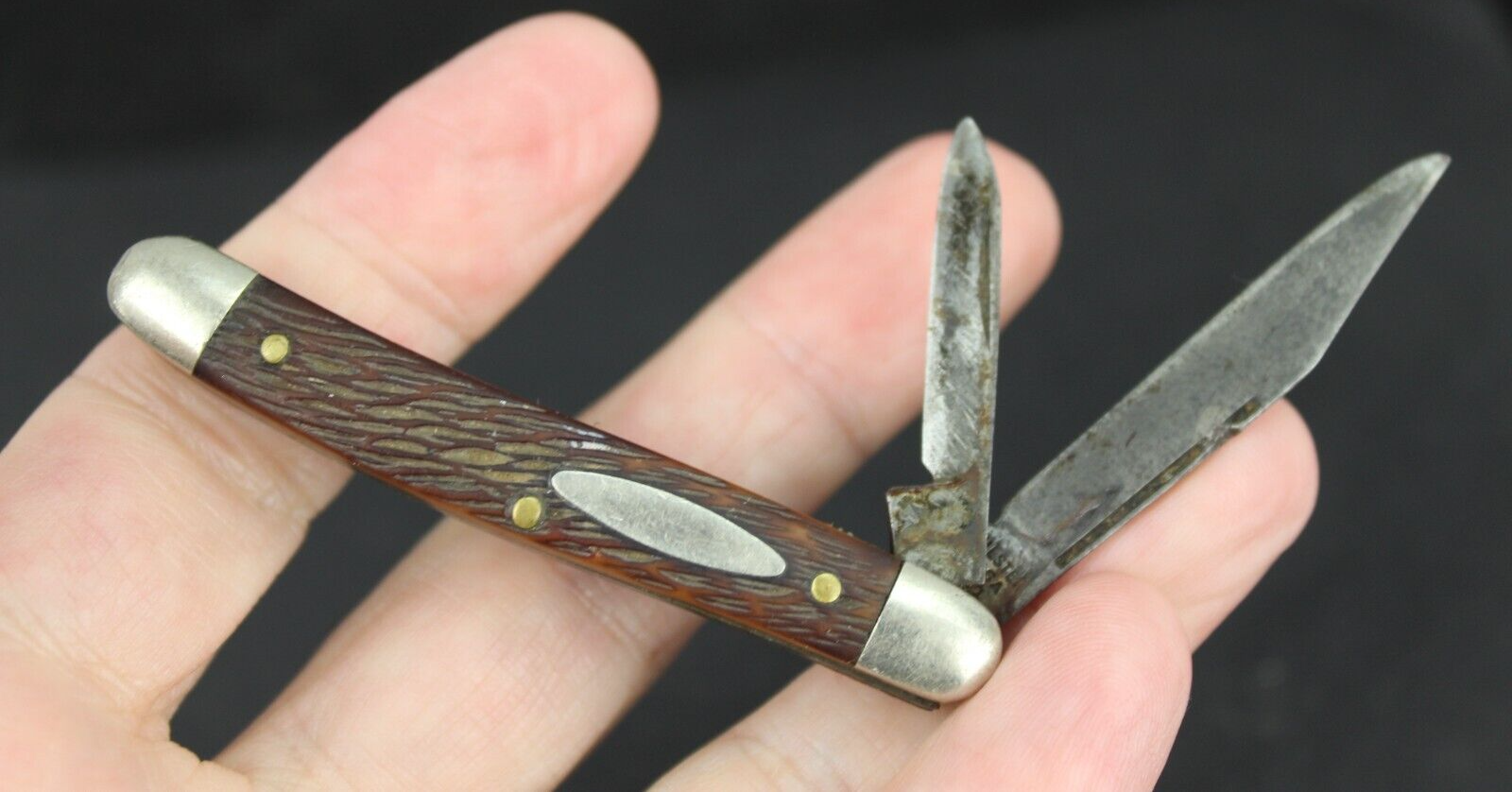 vintage pocket knife ULSTER KNIFE CO 81 two blade 1960s JIGGED ESTATE SALE