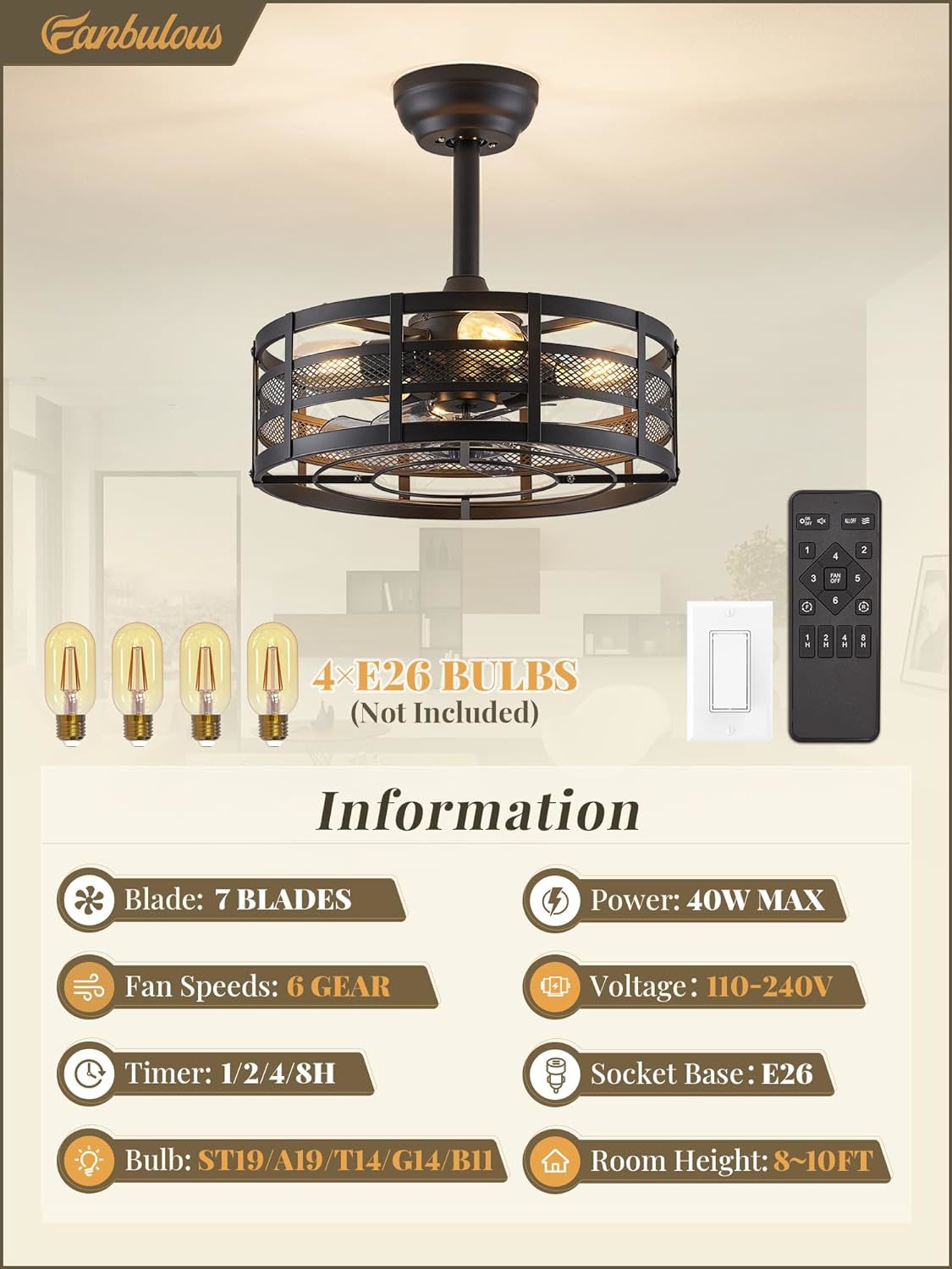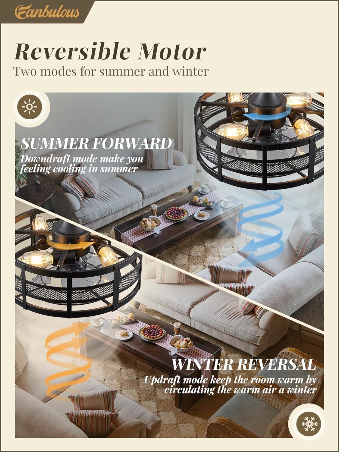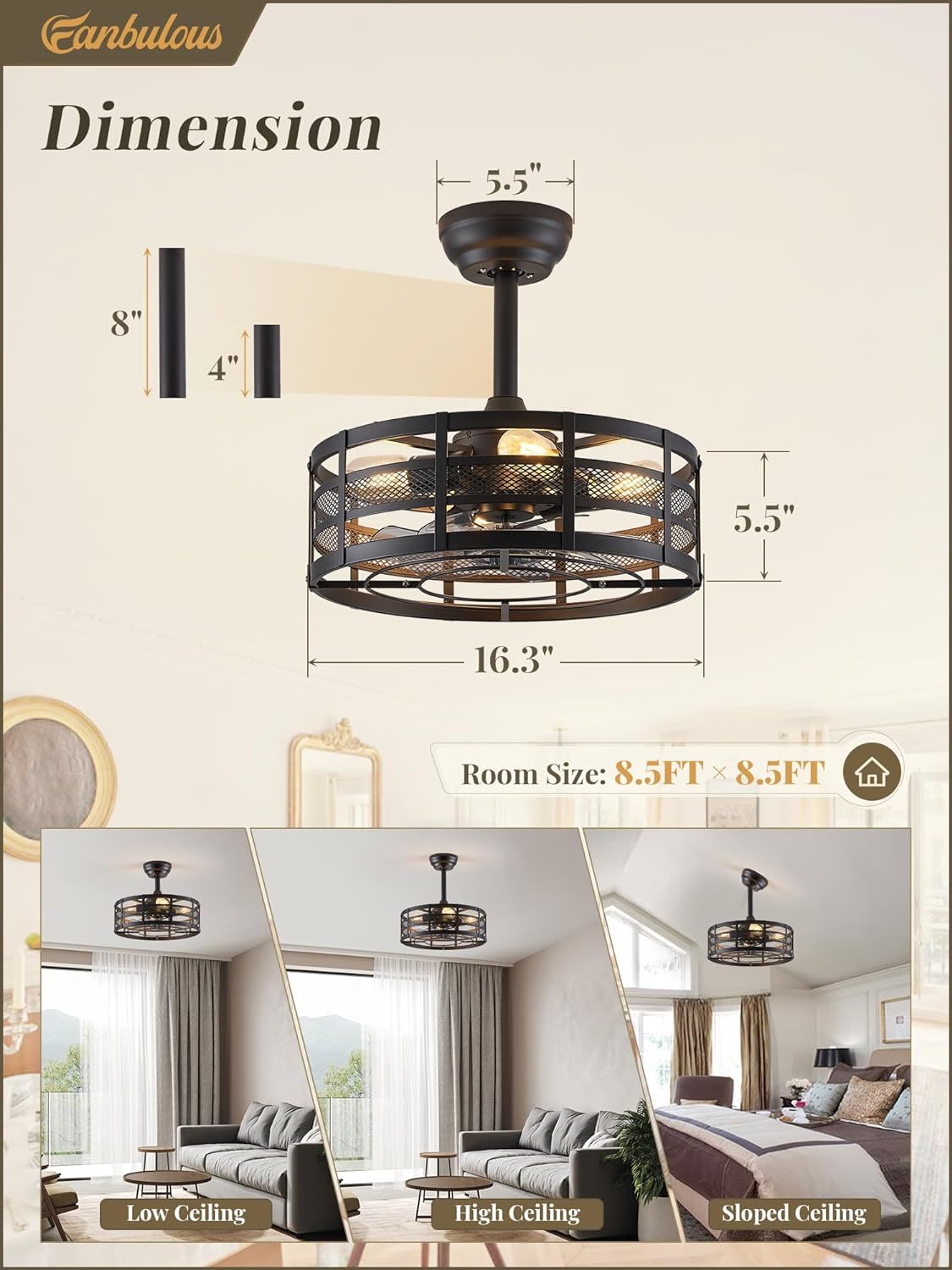 The Mesh-Shape Metal Cage-Caged ceiling fan has a stylish and versatile look with quality and texture. Farmhouse and modern style can be switched at will, and can be installed on sloping ceilings. Suitable for bedrooms, kitchen, outdoor. QUIET MOTOR: Stable safe and powerful performance, no noise, fandelier ceiling fan with light can accompany you to sleep. Universal for all seasons and with 2 years of after-sales service. REMOTE CONTROL: The remote control can be used for light and fan switching, wind speed adjustment, timing, reversible, etc. What's more, at the request of buyers, we set the button to eliminate the beeping sound. EASY INSTALLATION: Complete accessories (detailed instructions included), easy to install by 1 person. The small ceiling fan has been tested by lifting weight test experiment, safe and reliable. ASSURANCE SERVICES: Please feel free to contact us if you encounter any problem, we will reply and solve your problem within 24 hours.