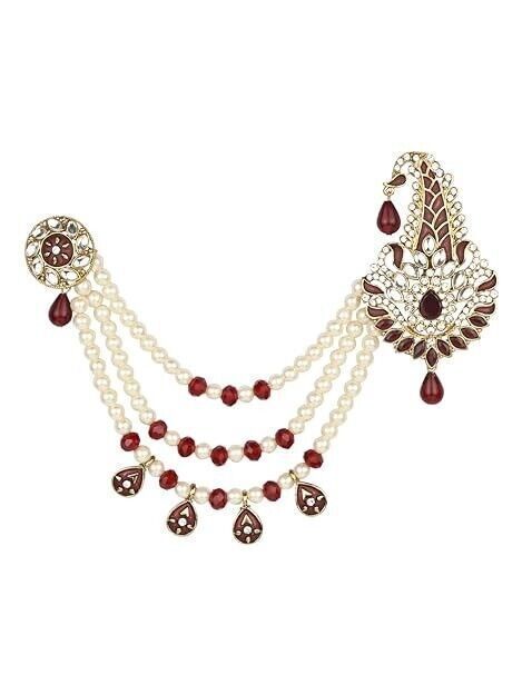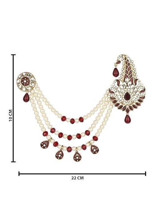 Broche Safa Kalangi Chapado en Oro Perla de Piedra Tradicional Gota para Novio/Hombres/Dulha Pagadi 500B08MQ6X5XX