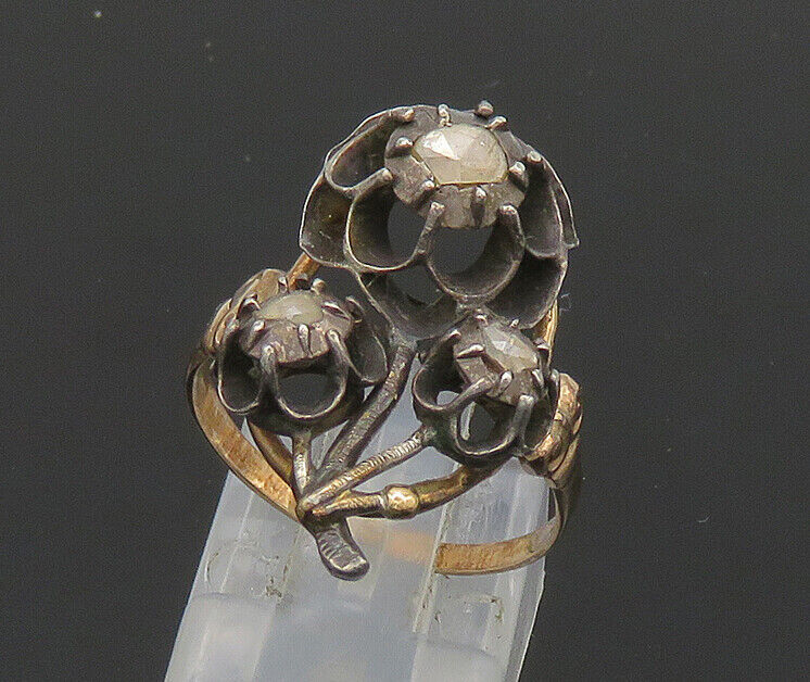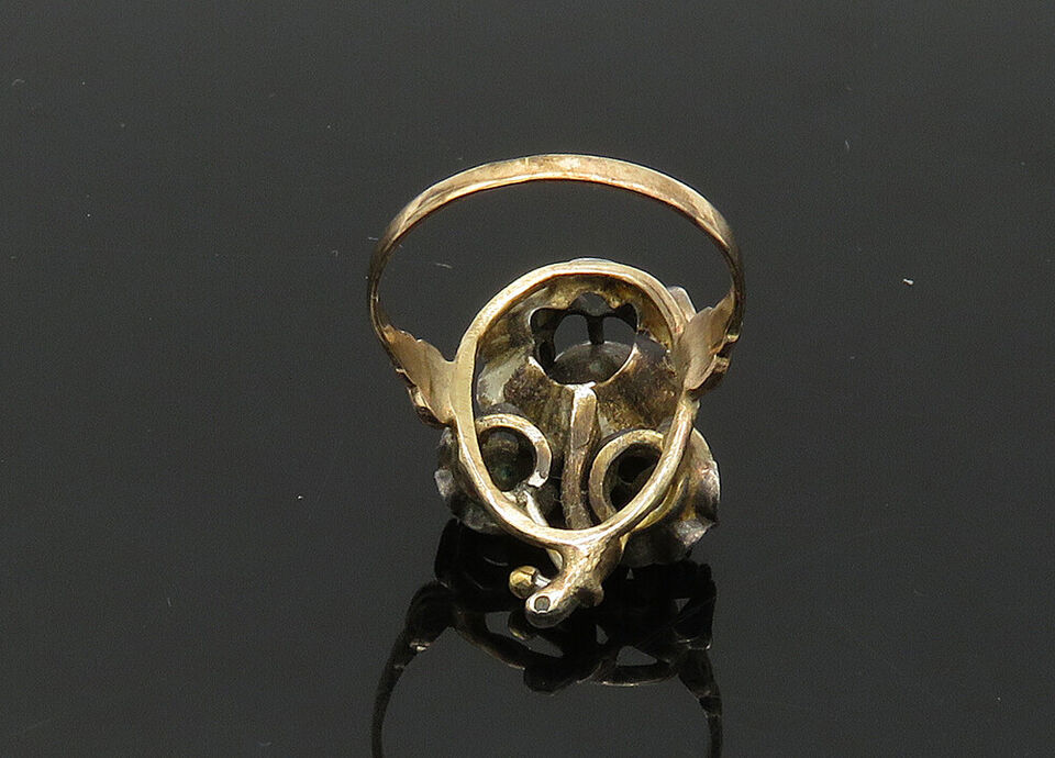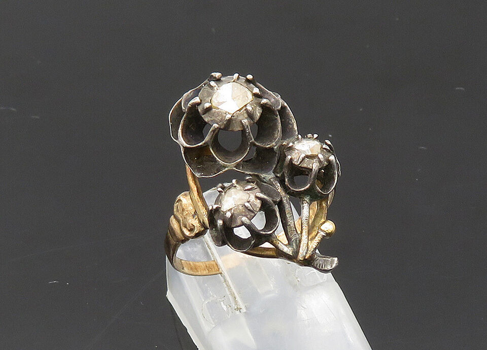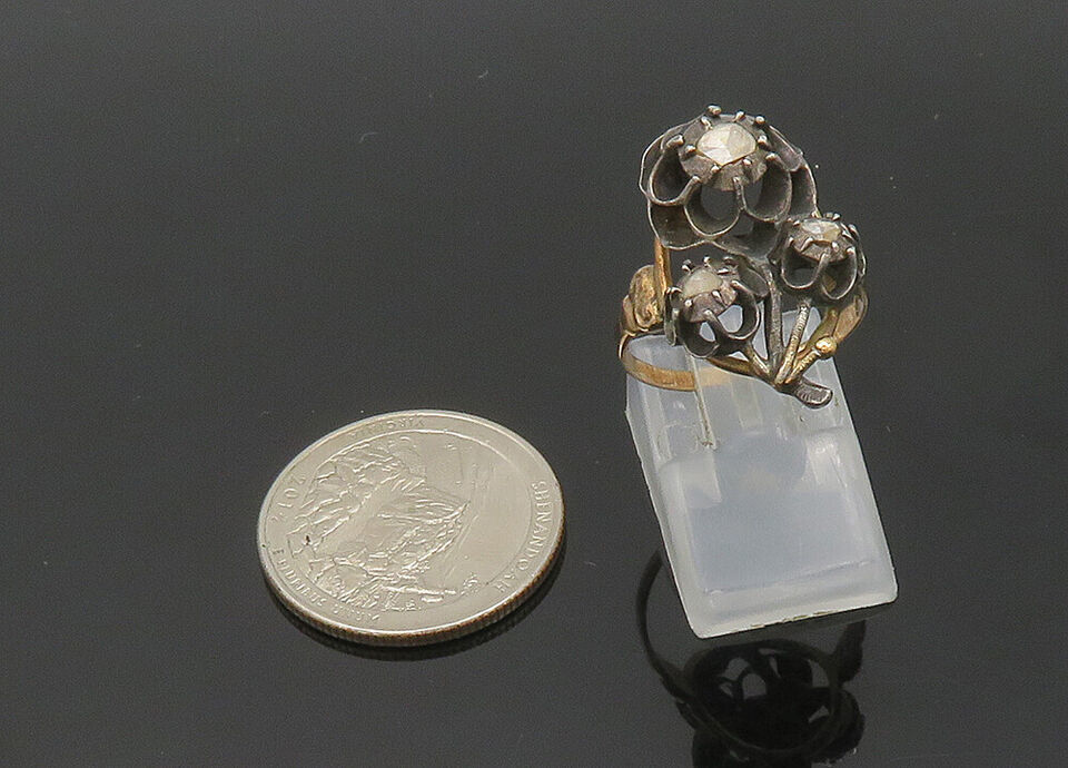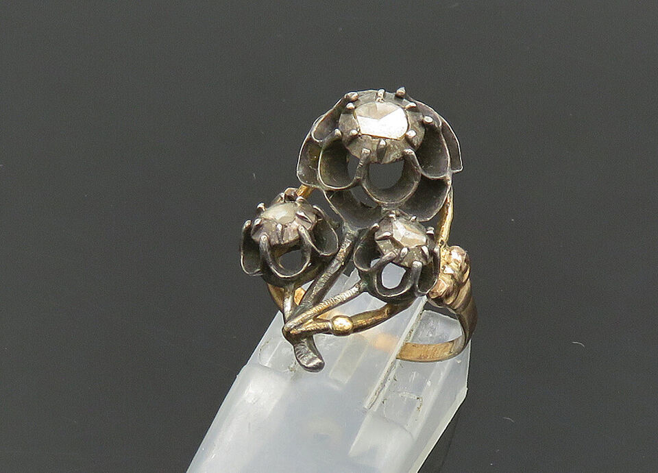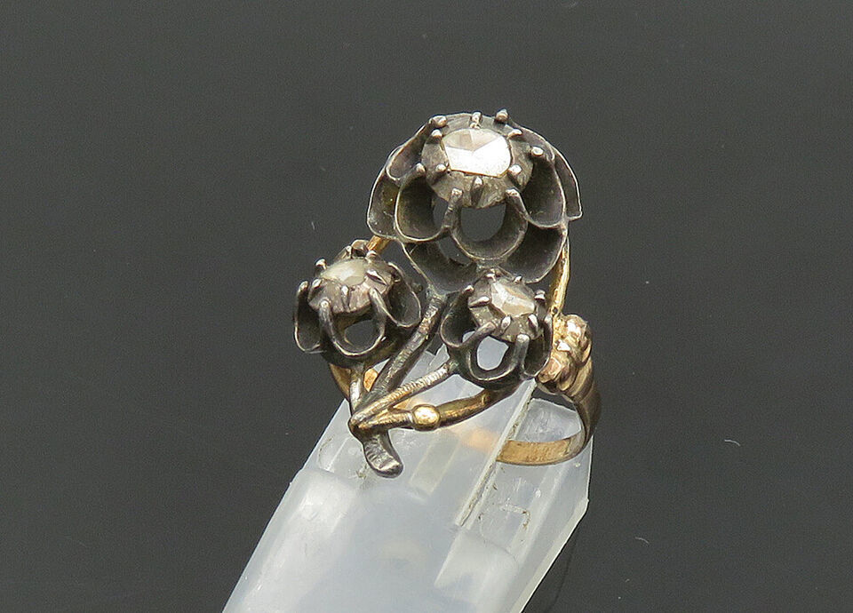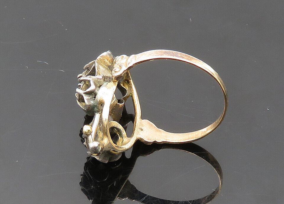 Authenticity Guarantee 10K GOLD - Vintage Antique Old Cut Diamonds Floral Ba...
