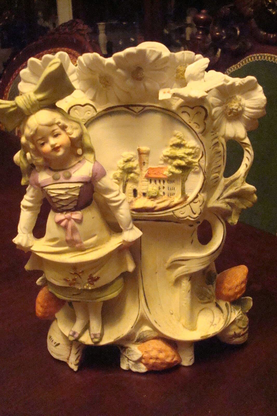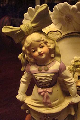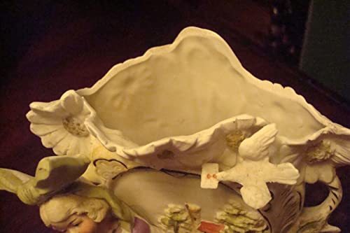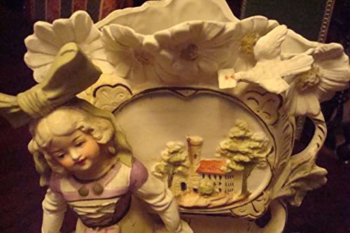CARL SCHNEIDER'S HEIRS 130 years old bisque planter girl w/bow,dove flowers[9