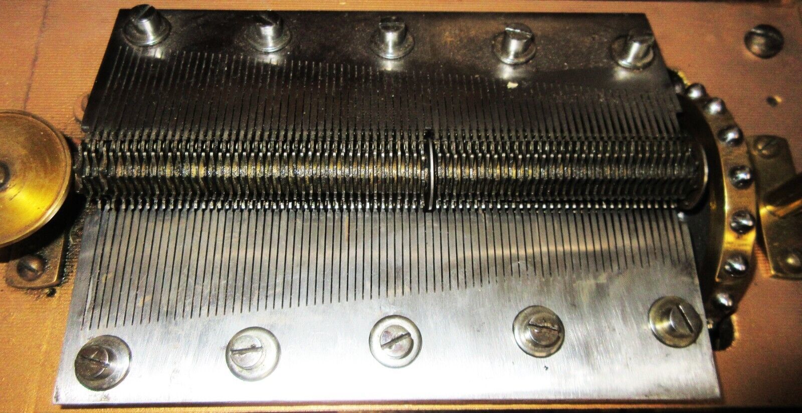 Has a double comb in a mahogany deluxe cabinet.