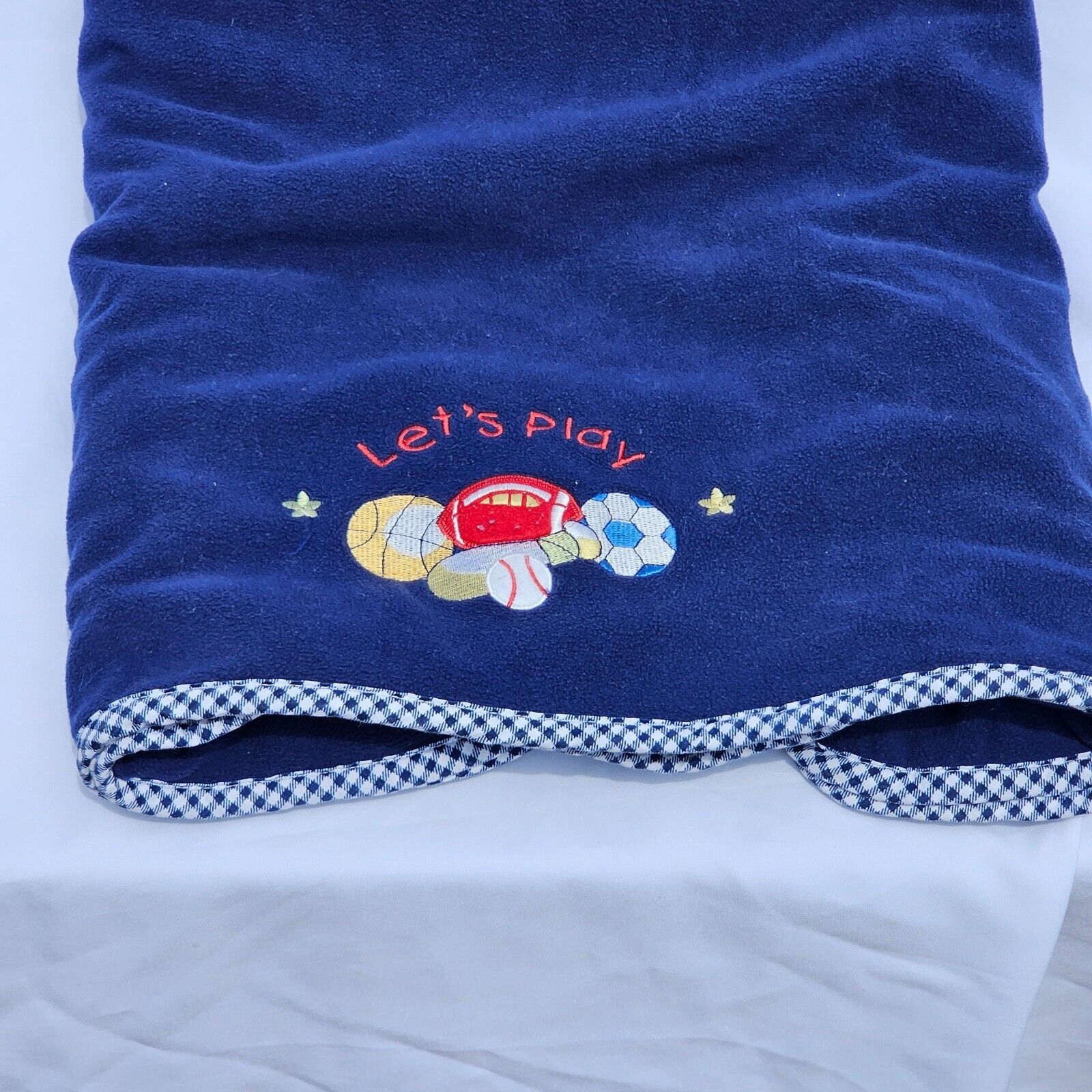Koala Baby Let's Play Sports Blue White Blanket Balls Baseball Soccer Football