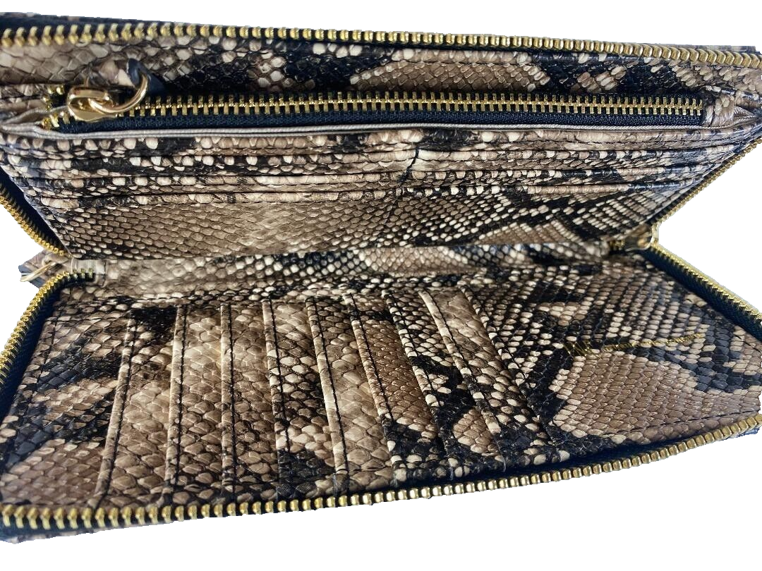 15 interior card slots, 1 zip pocket, 3 slip pockets 1 phone pocket