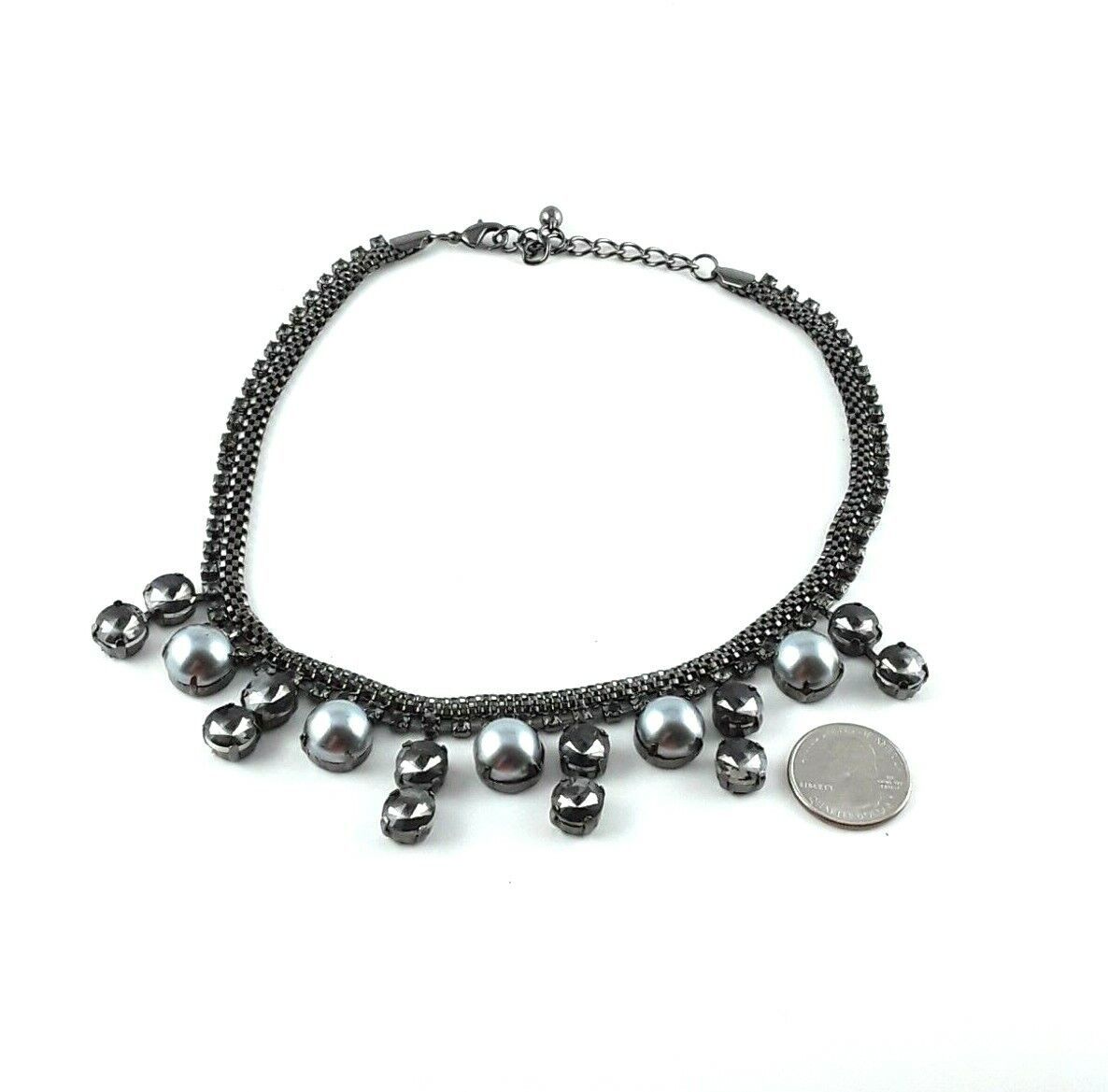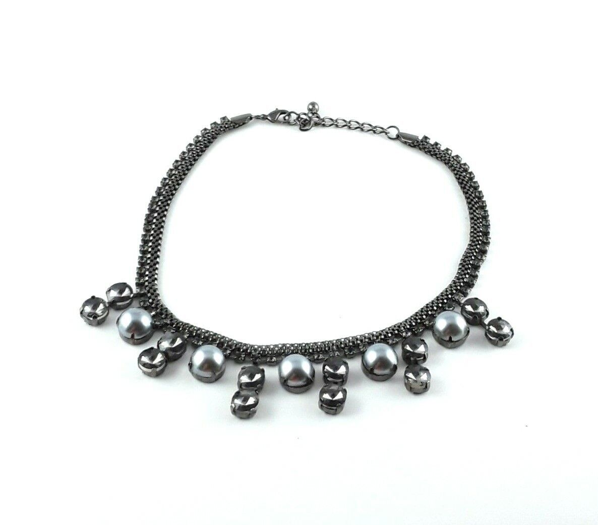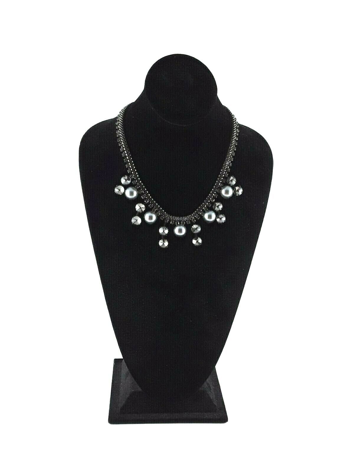 Up for sale: Rhinestone Gray Faux Pearl Bib Cluster Necklace in great condition with the following features: