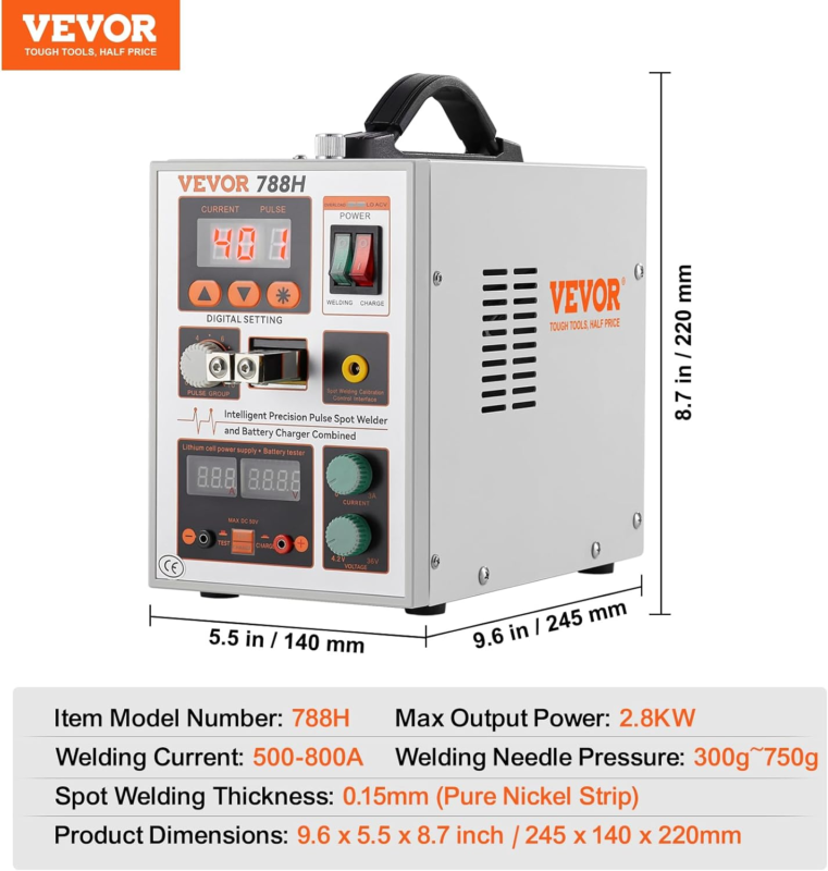Lightweight and Portable: VEVOR 788H battery pulse spot welding machine is compact, lightweight, and easy to transport with the handle. Compared to traditional large-sized, bulky spot welders, it's smaller and lighter yet more powerful and reliable in functionality.
