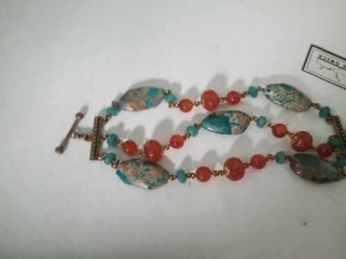 Stephen Dweck Beaded Bronze Bracelet with Turquoise Carnelian Jade NWT