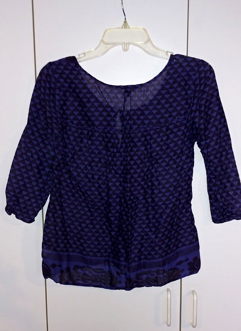 THIS IS A NICE LADIES AMERICAN EAGLE OUTFITTERS 3/4-SLEEVE THIN COTTON PULLOVER TOP IN A SIZE JR. SMALL. IT IS IN EXCELLENT, WORN ONCE, CONDITION.