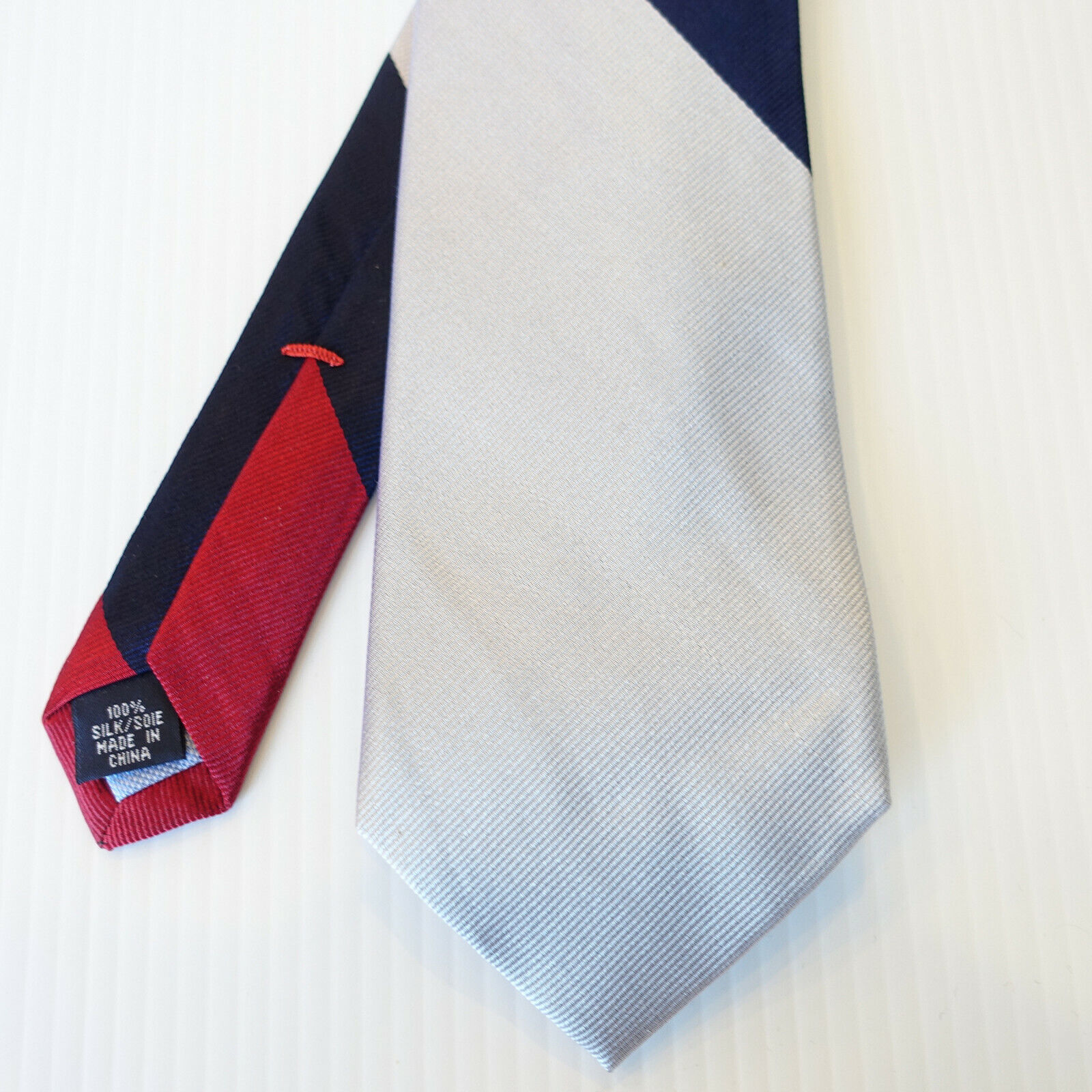 Red Navy Blue Silver Gray Tri-Color Panel Silk Twill Classic Tie