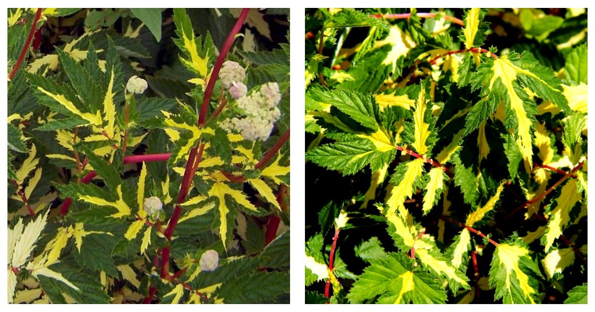 Queen Of The Meadows (Filipendula ulmaria 'Variegata') Grows to 24" inches tall Zone 3-9b. Perennial. Part Sun to Dappled Shade. Filipendula ulmaria variegata is a variegated meadowsweet with white, cream or yellow splashes on the dark green leaves and scented white flowers.