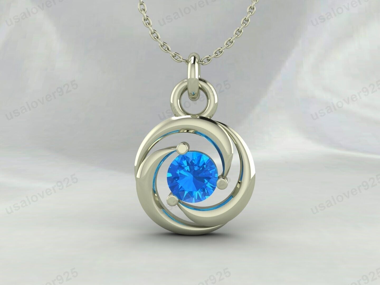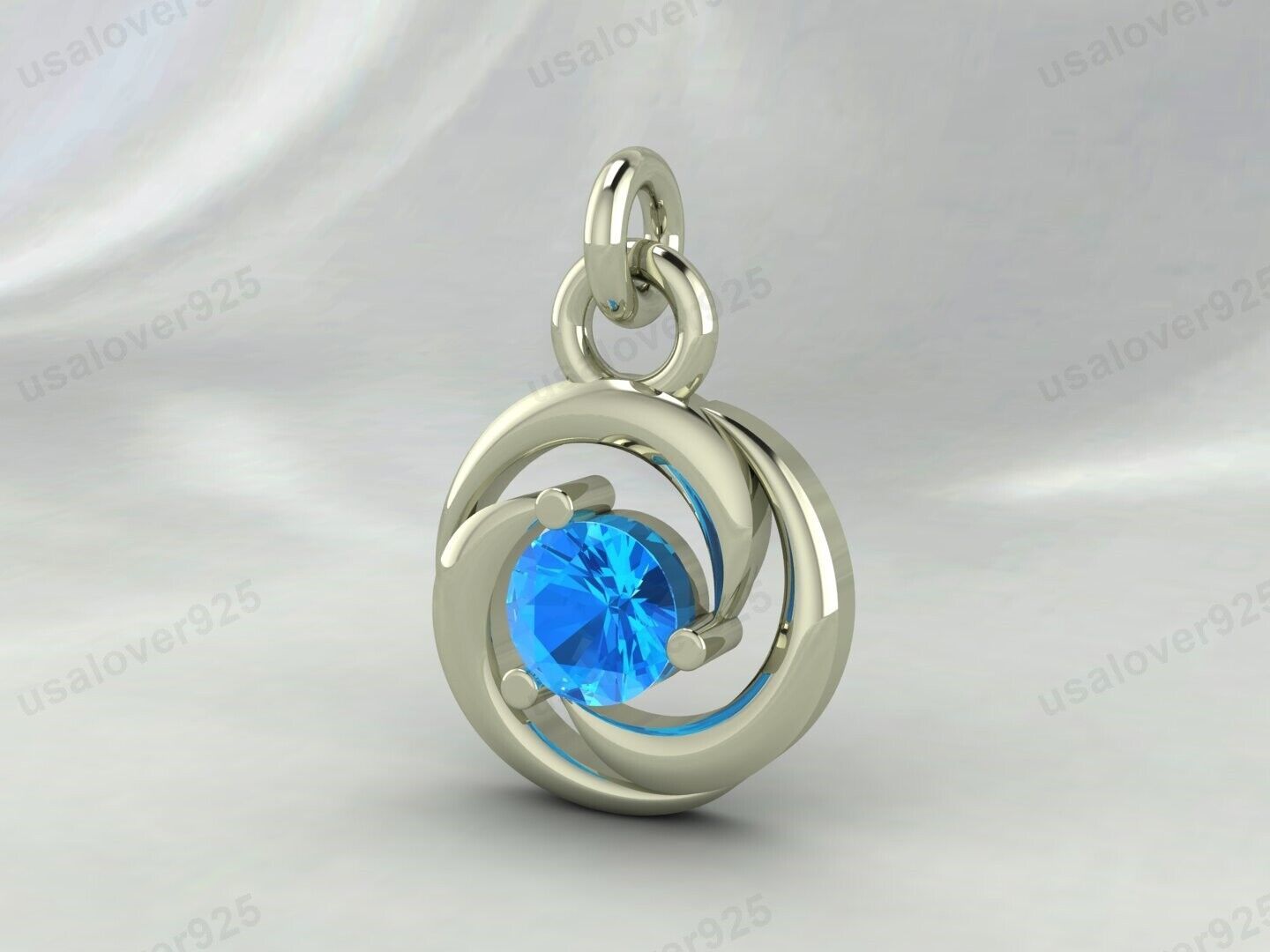Blue Swiss Topaz Gemstone 925 Sterling Silver Handmade Pendant Necklace Jewelry