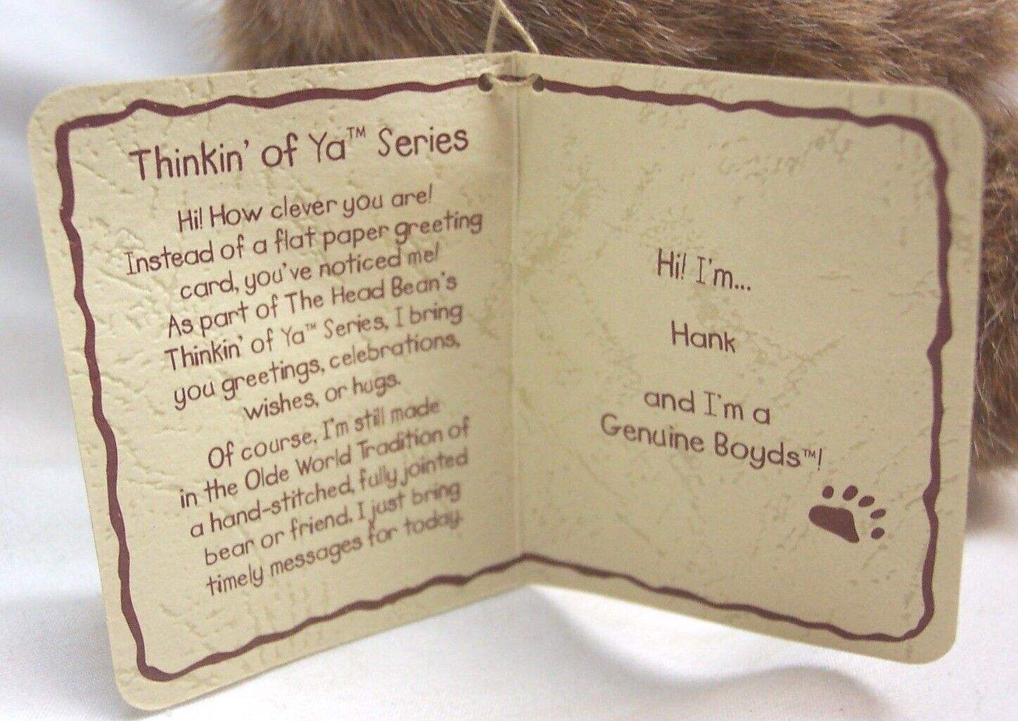 This is a Vintage Boyds Thinkin of Ya HANK TEDDY BEAR W/ BASEBALL Plush Stuffed Animal Toy. Made by Boyd's Bears. It is 8 1/2 inches tall in standing position and 6 1/2 inches tall in sitting position. It is NEW with the tag. Combine auctions to save on shipping. Please contact me if you need to make other payment arrangements. EAG