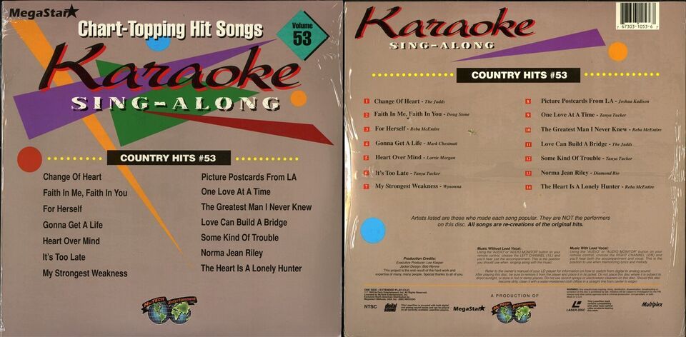 This is a new factory sealed LASERDISC of the rare music classic MegaStar KARAOKE SING-ALONG Volume 53 COUNTRY HITS, containing the following chapters: