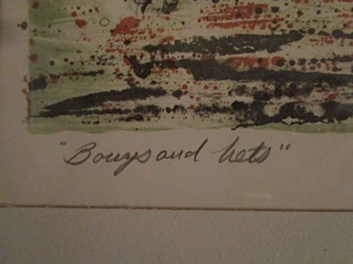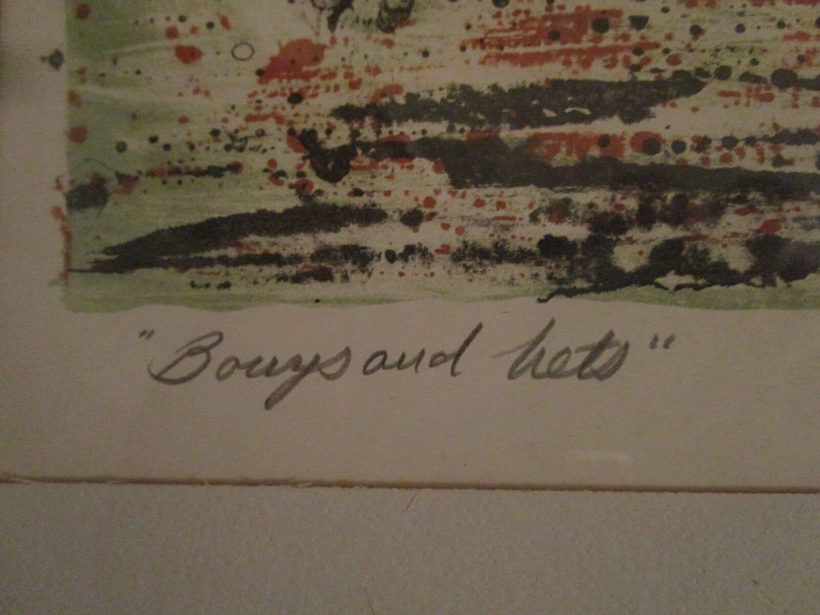 John Davie Muench (American, 1914-1993) ORIGINAL WATERCOLOR "BOUYS AND HATS" frame is 22 x 18" art is 13 x 9" VERY GOOD CONDITION, SOME LIGHT SURFACE SCRATCHES in frame COMMENSURATE WITH AGE About Us About Us Payment Terms Returns About Us