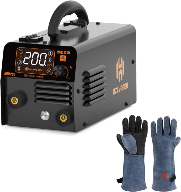 HZXVOGEN 110V MIG Welder 200A Flux Core Welder 3 in 1 Gasless MIG Welder/Lift TIG/Stick Welding Machine Portable IGBT Inverter Large LED Display Automatic Wire Feeding Welder Machine and 16 Inches 932? Heat Fire Welding Gloves Grill Gloves for Arc Tig Mig Wood Stove Barking Oven Fireplace Welder Gloves