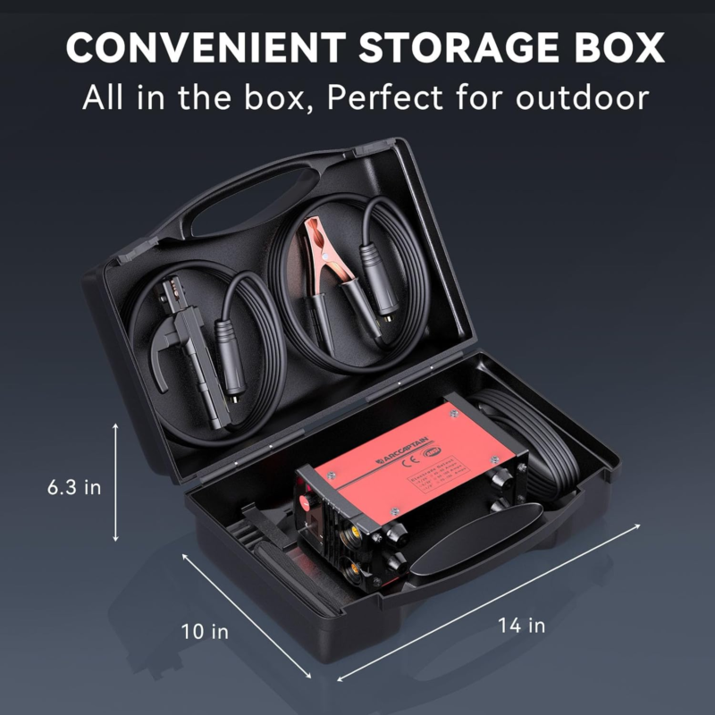 ?Portable Welder?The mini welder machine with a compact design and easy-carry handle, you can take it to anywhere you want. Light Weight that perfect for outdoor maintenance, farm, road equipment, house and property etc,.