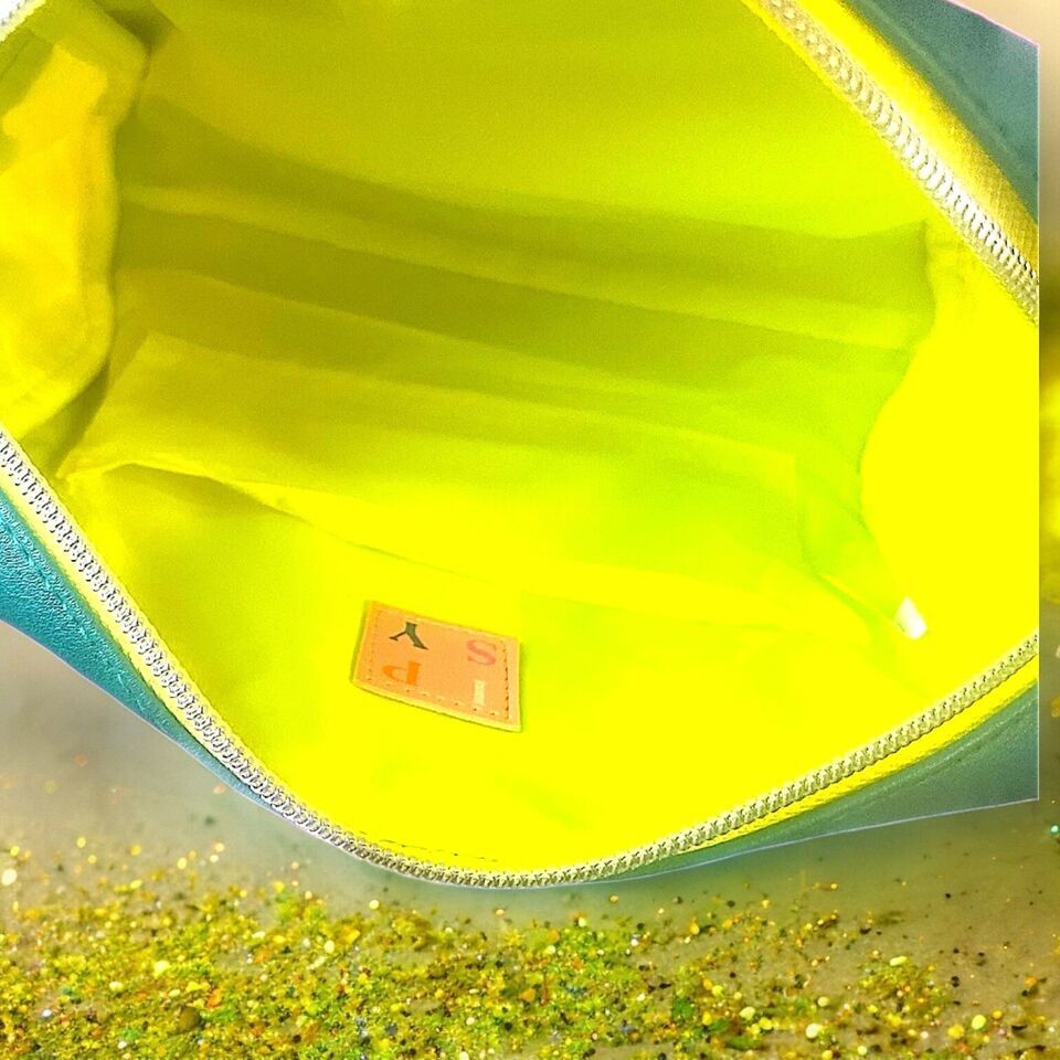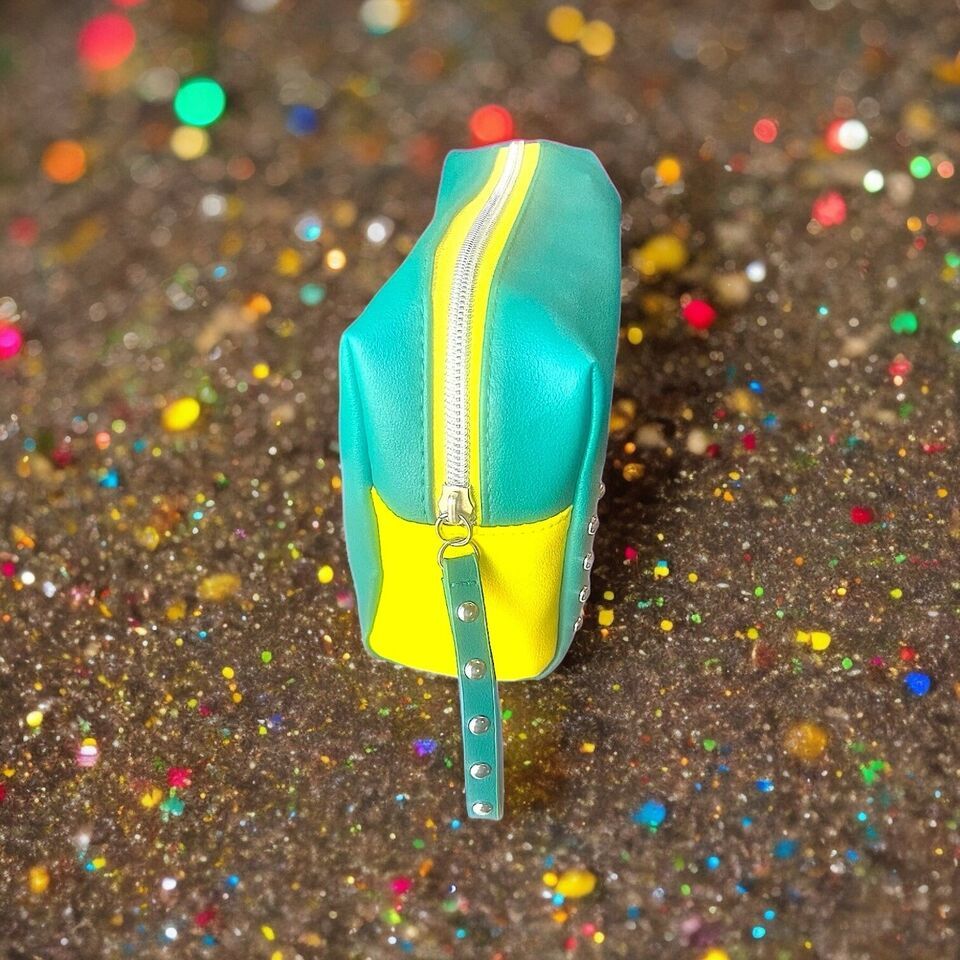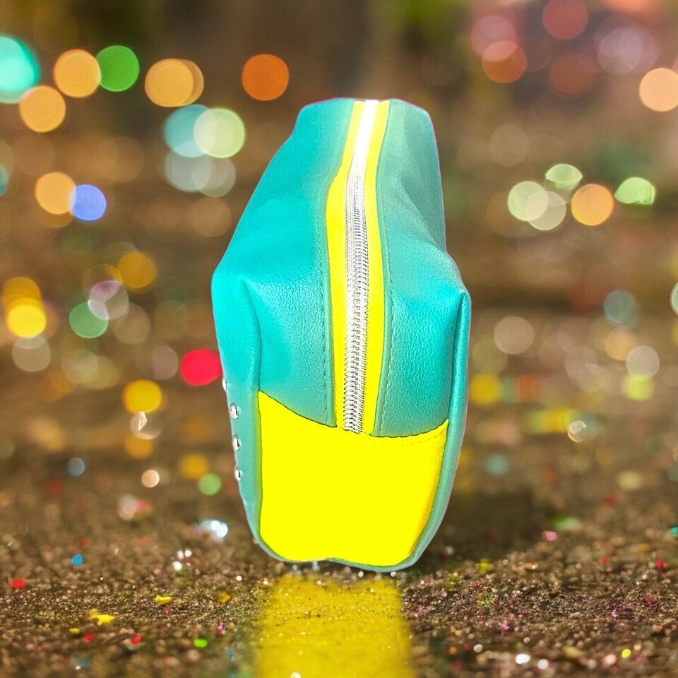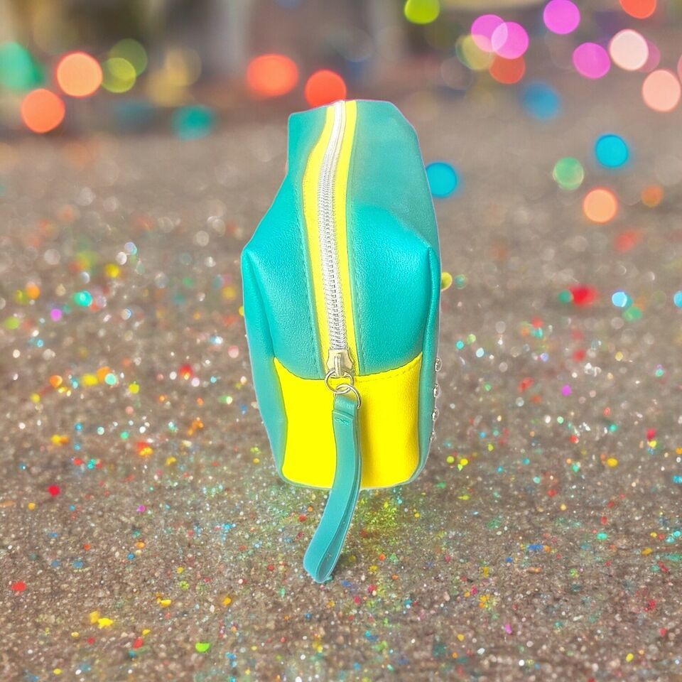 IPSY March 2020 Glam Bag Ultimate Studded Green With Yellow Interior 11x7.5 NWOT