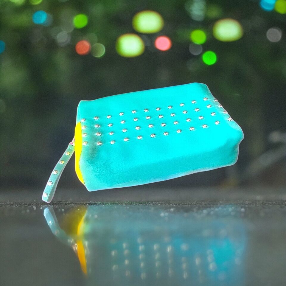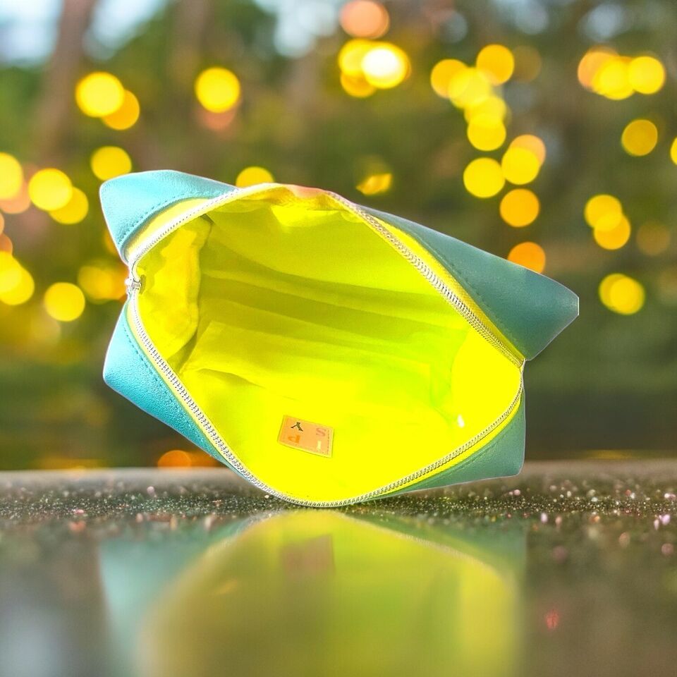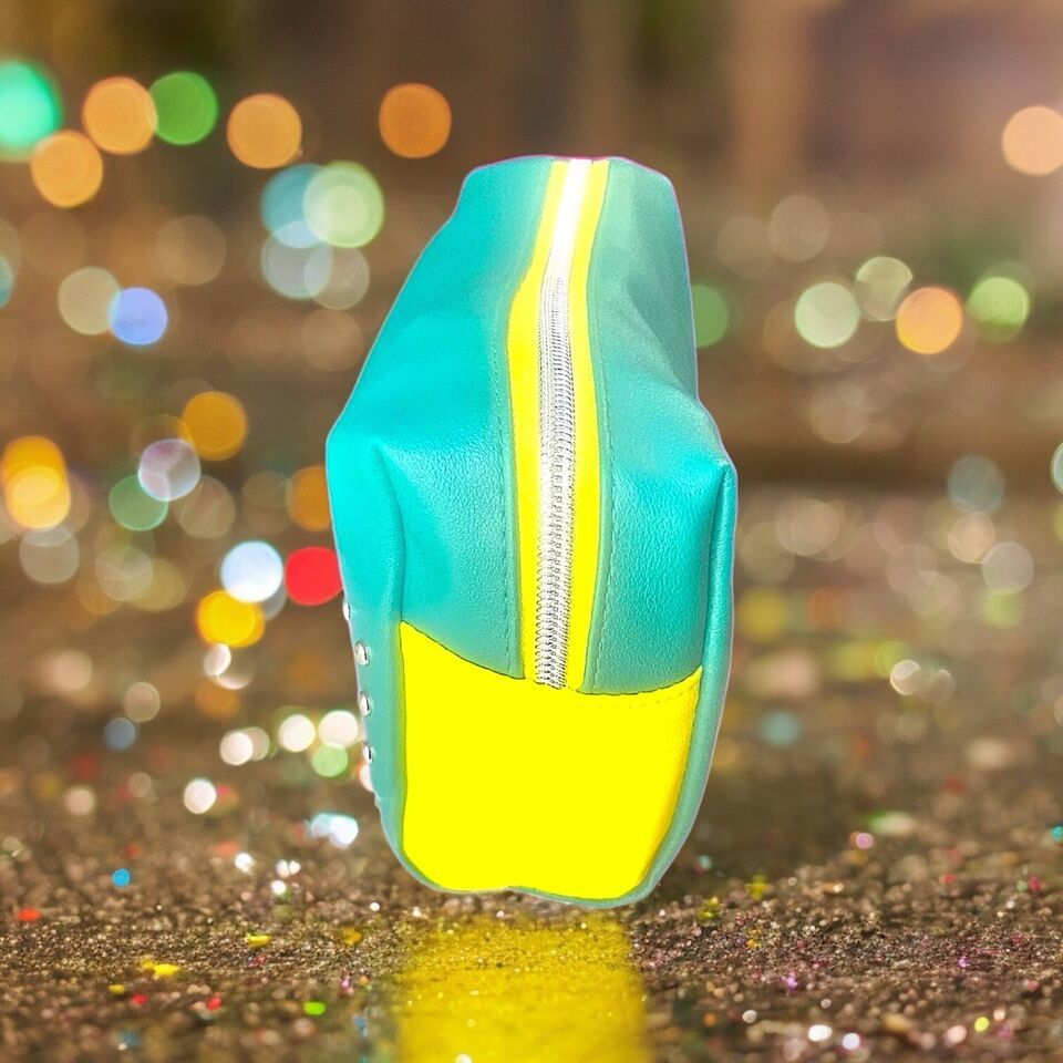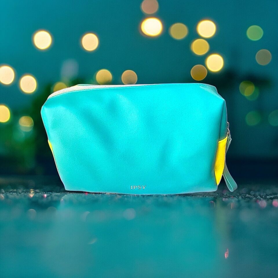 IPSY March 2020 Glam Bag Ultimate Studded Green With Yellow Interior 11x7.5 NWOT