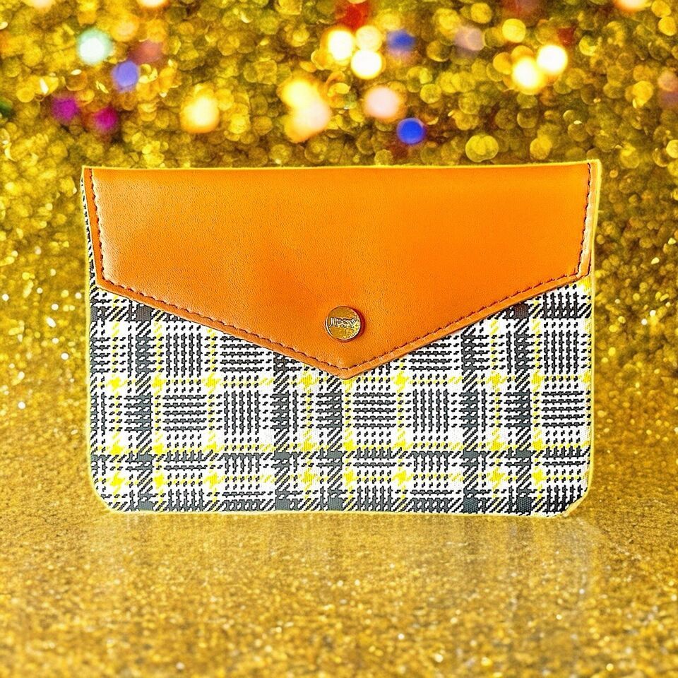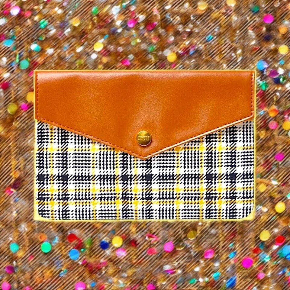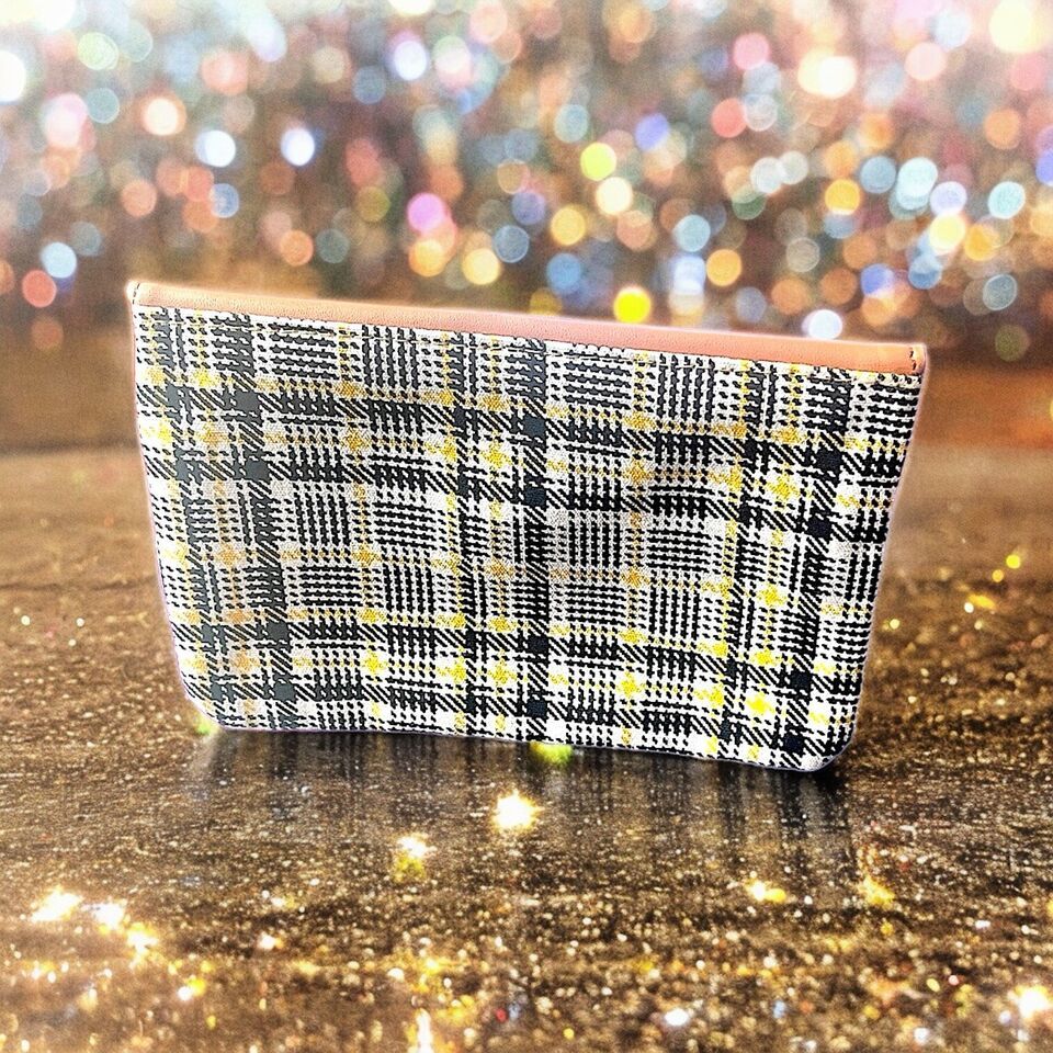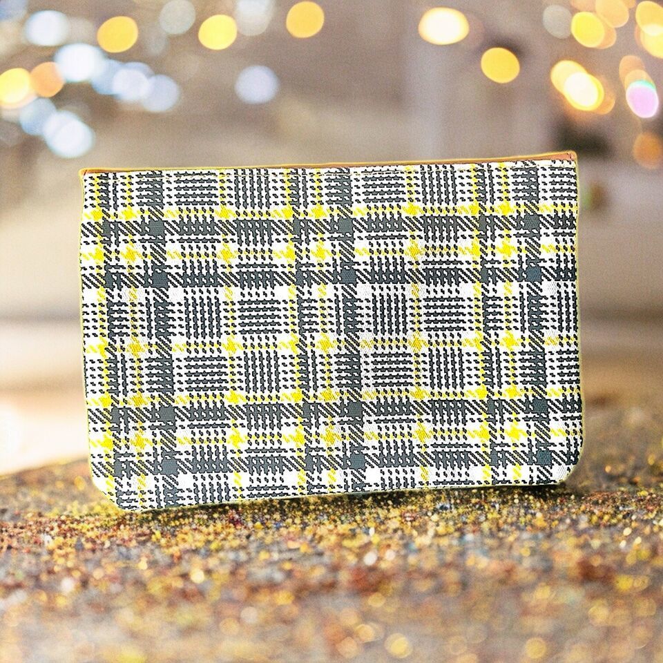 Ipsy September 2021 Glam Bag Black/Yellow Plaid Bag Only Snap Closure 5?x7? NWOT