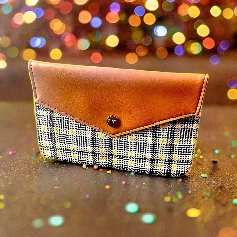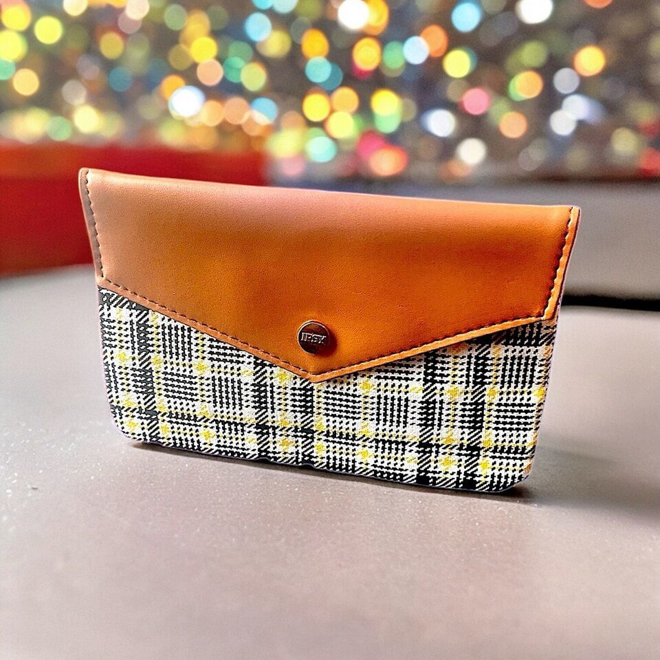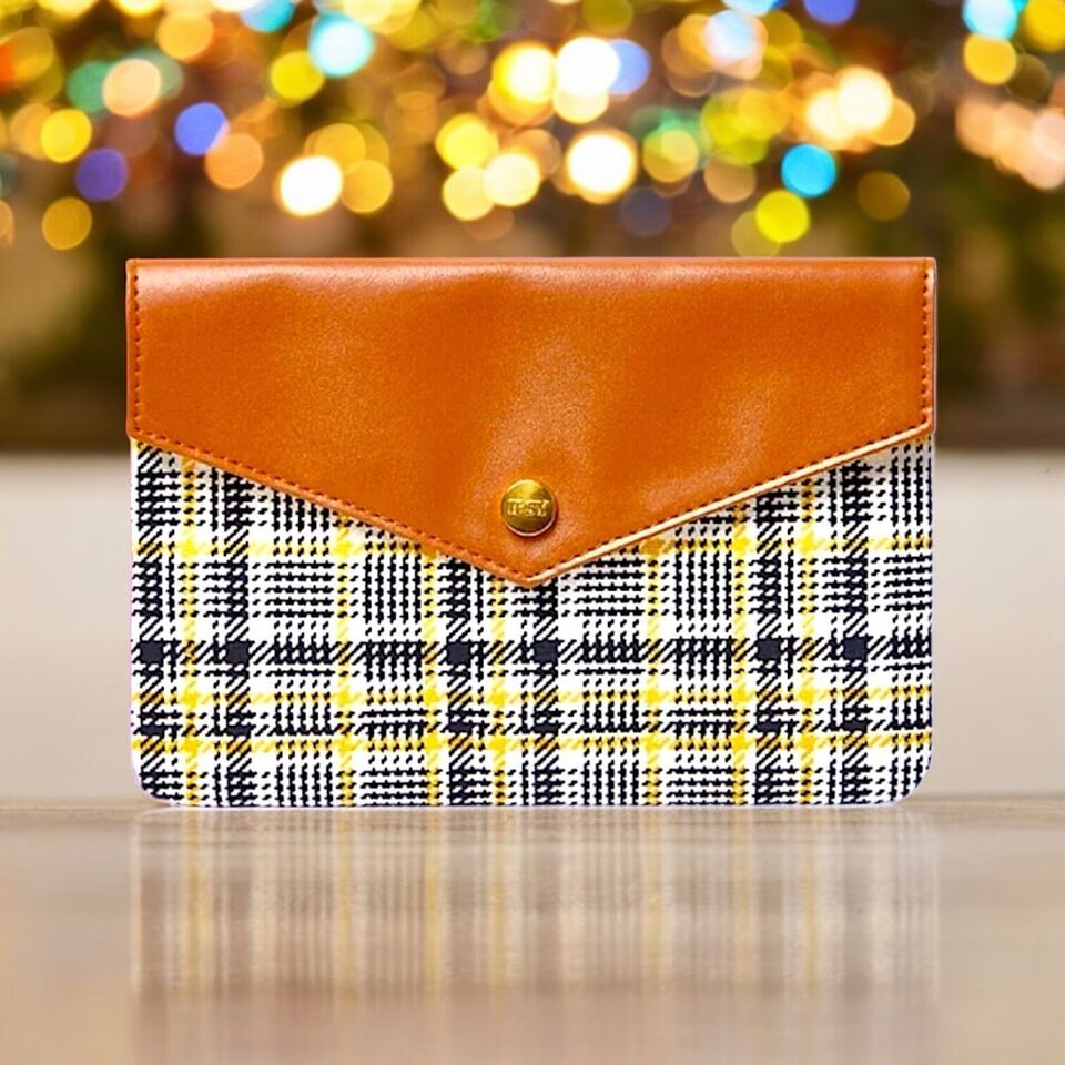 Ipsy Glam Bag Black/Yellow Plaid Bag Only Snap Closure 5”x7” NWOT September 2021