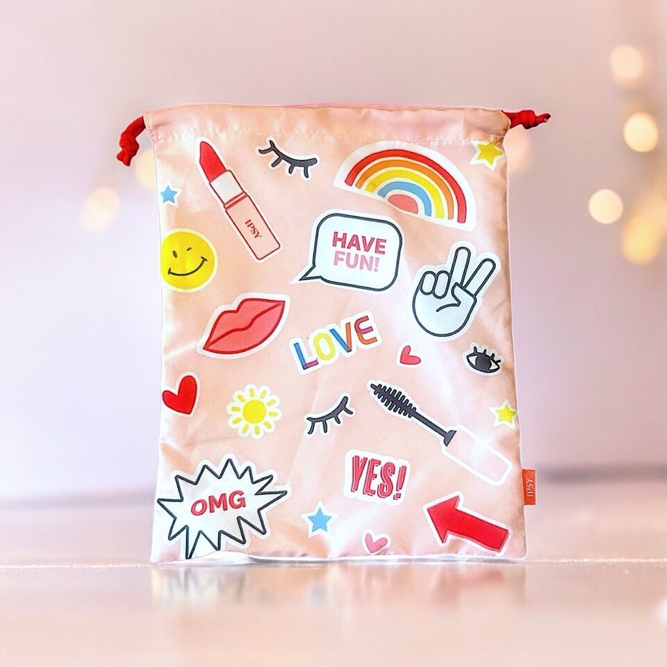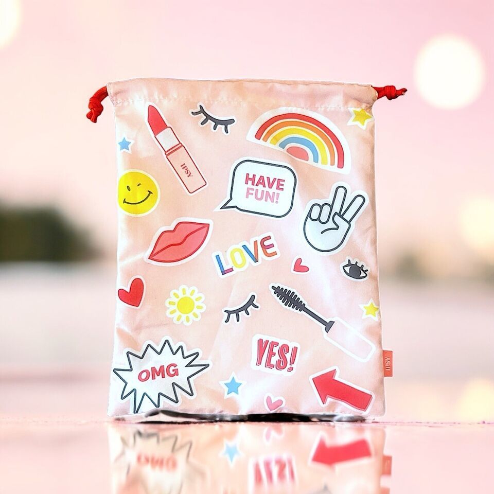 Ipsy Glam Bag Plus Drawstring Cosmetic Bag 8”x10” New Without Tags June 2021