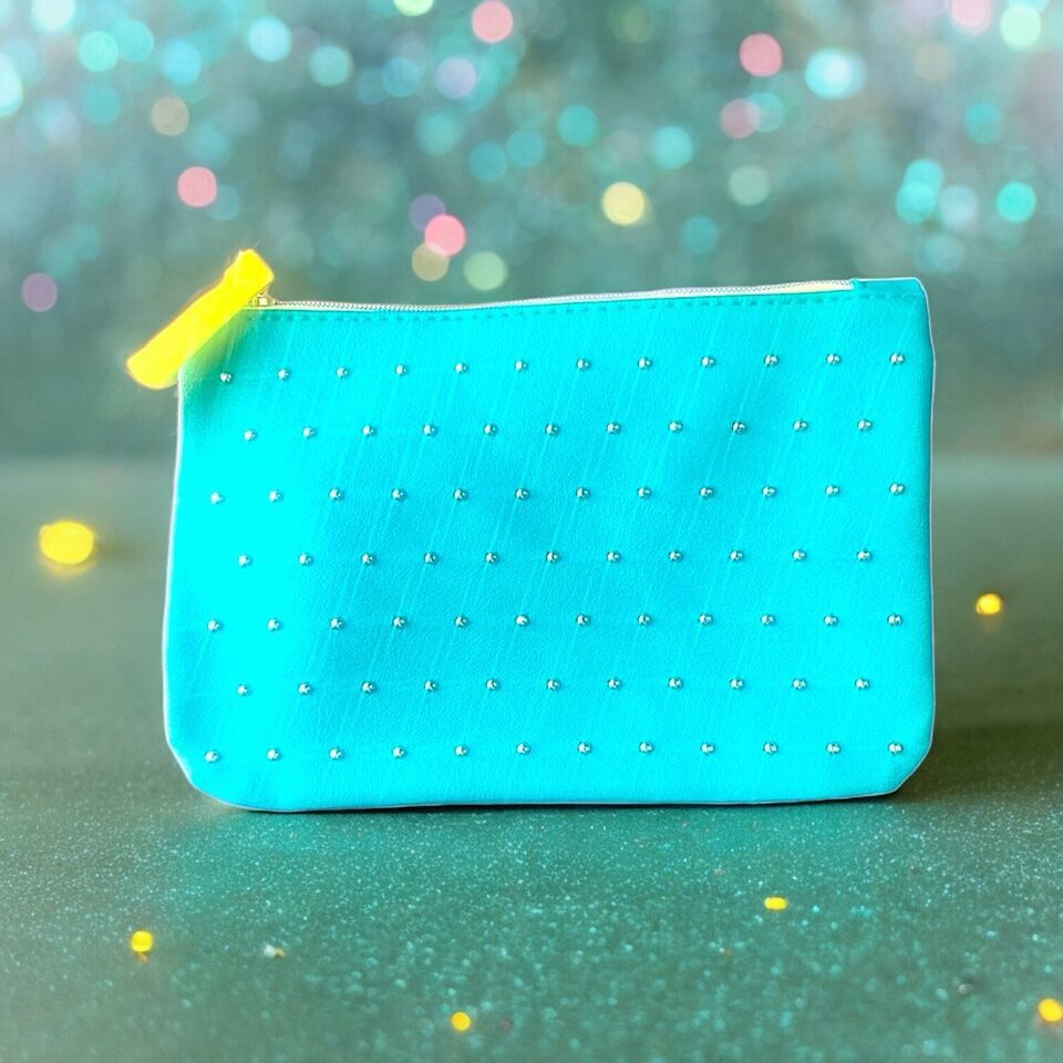 IPSY March 2020 100th Glam Bag Celebrate You Teal Studded Bag 5?x7? NWOT