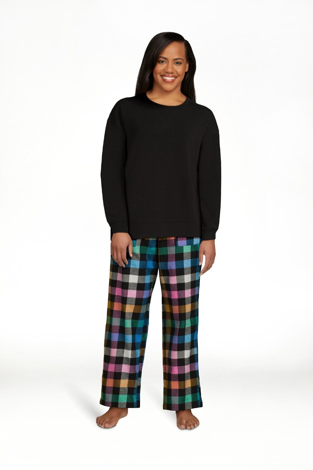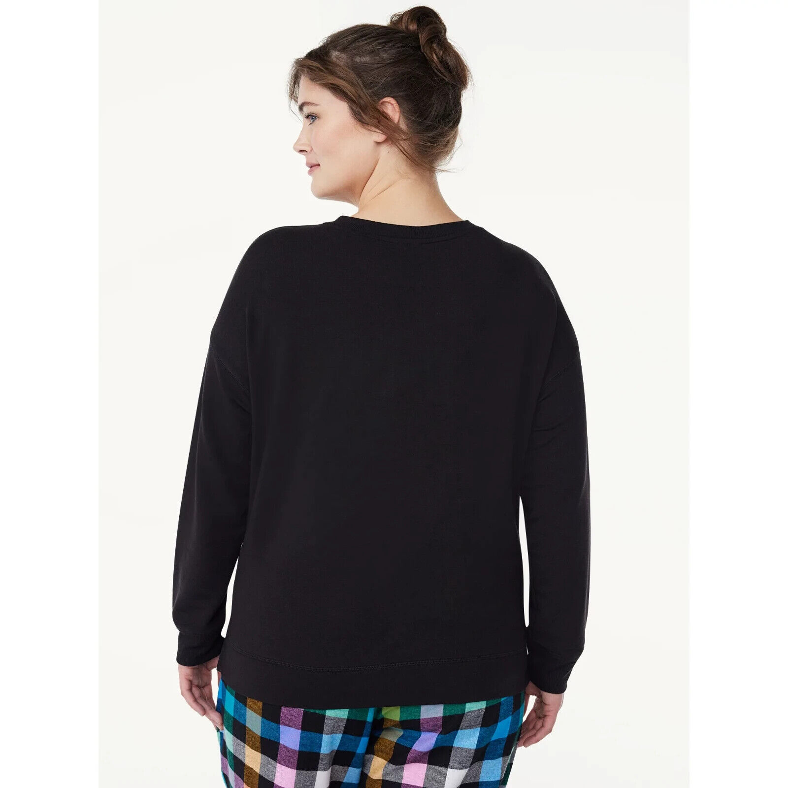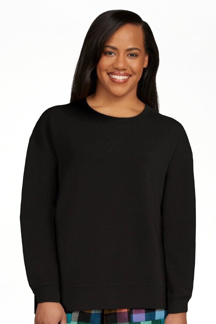 Joyspun Women's French Terry Sleep Top with Long Sleeves, Black Soot Size S(4-6)