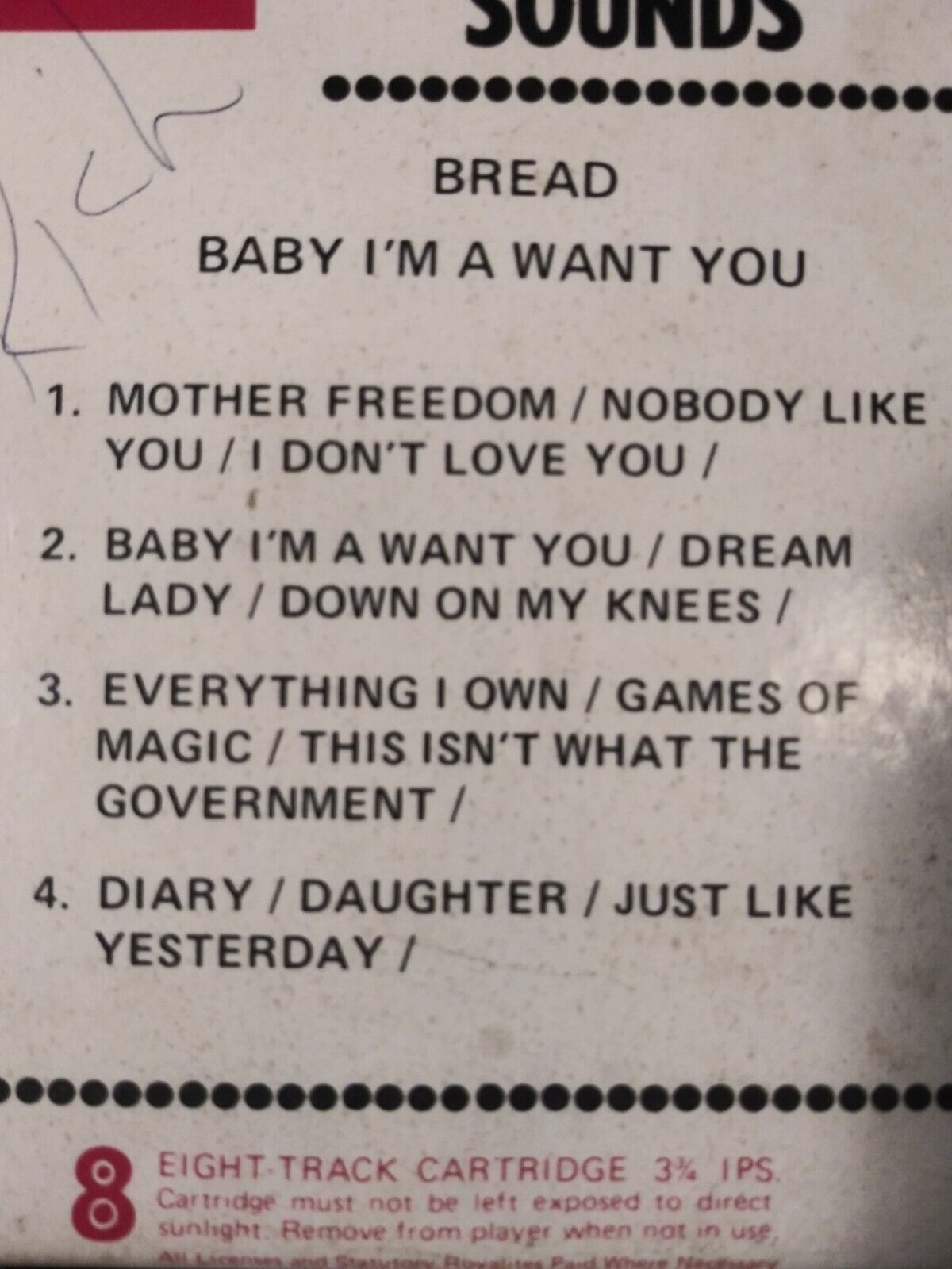8 track-Bread-Baby I'm A Want You-REFURBISHED & TESTED!