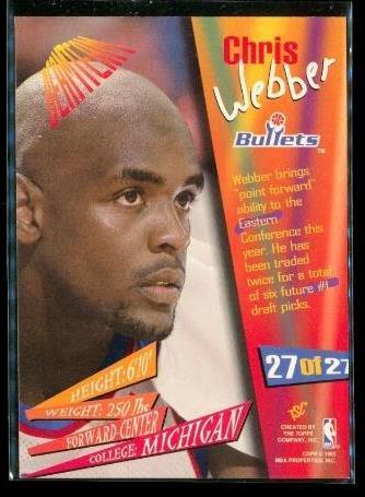 1995 Topps Stadium Club Chris Webber Beam Team Insert #27 Bullets Basketball
