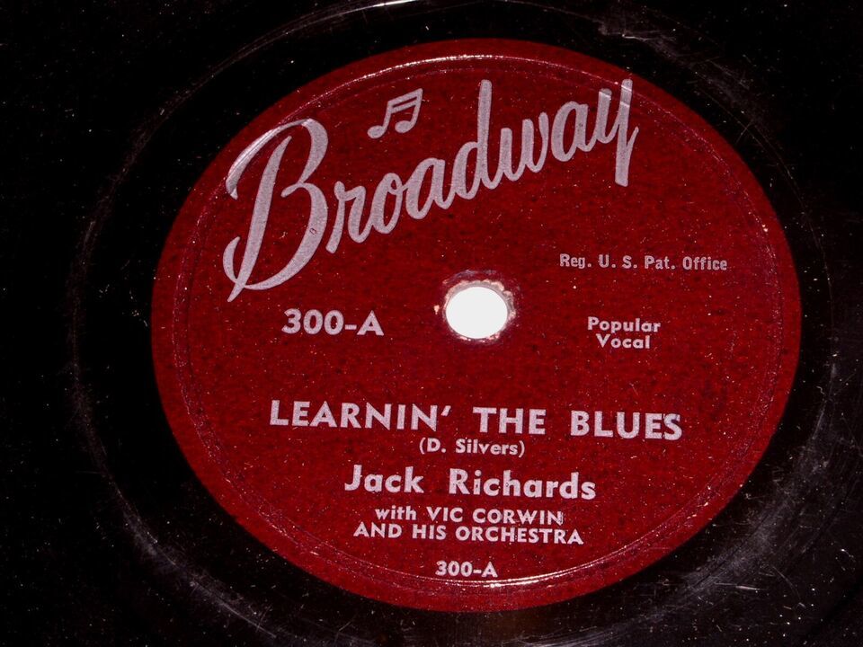 This is a 78 rpm recording by Jack Richards entitled, "Learnin' The Blues". Flipside: "Heart". Record label Broadway 300.