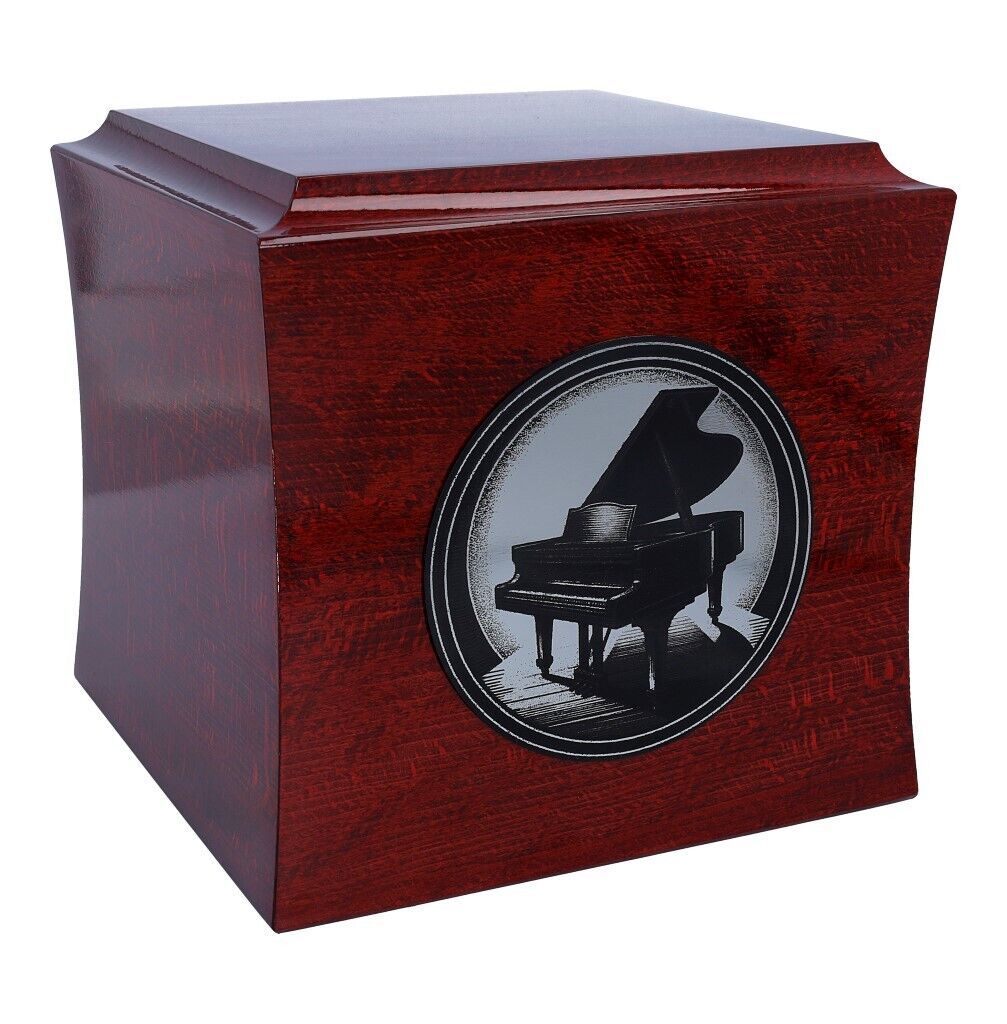 Celebrate the life of a music lover with this beautifully crafted Piano Urn. Designed for adult-sized cremation remains, this modern, wood urn features an elegant engraved grand piano design, perfect for musicians and organ enthusiasts. The fine craftsmanship and attention to detail make this urn a fitting tribute to those who dedicated their lives to music. Ideal for memorializing a beloved pianist or music aficionado.