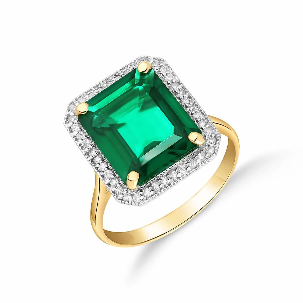 Galaxy Gold GG 14K Solid Yellow Gold Lab Grown Emerald and Natural Diamond Halo