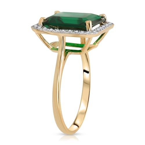 Featuring a vivid green emerald set in classic yellow gold, this ring radiates renewal and growth with timeless warmth and traditional elegance. Cleopatra's favorite gem, emerald is revered as a stone of infinite patience, unconditional love, and domestic bliss. It is believed to sharpen intuition and reveal truth. As the May birthstone and a gem aligned with Taurus and Gemini, this piece carries deep personal meaning for those connected to these signs or born in May. Connected to the heart chakra, wearing emerald close to the body is believed to enhance its healing and spiritual properties. Accented with brilliant white diamond for added brilliance and contrast. Designed for everyday wear or special occasions, this ring makes a beautiful statement on any hand. Made in USA by Galaxy Gold, a family-owned jeweler crafting fine pieces in Los Angeles since 1985. We use only solid 14K gold and ethically sourced natural gemstones, inspected through our stringent quality control process before shipping. A thoughtful gift for the woman who appreciates fine craftsmanship and timeless American-made jewelry. Every purchase includes our 30-day satisfaction guarantee and lifetime warranty ? because quality jewelry should last forever.