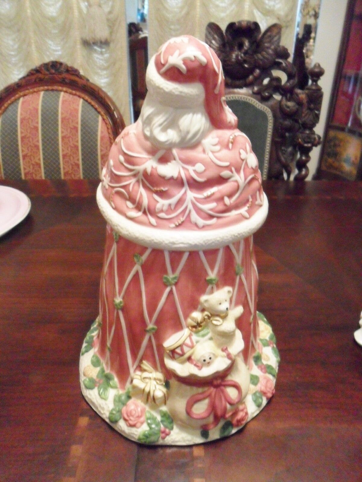2001 Fits Royal Albert "Seasons of Colour Santa Cookie Jar" 14" tall, no original box, very good condition, no damage, some light surface scratches commensurate with age