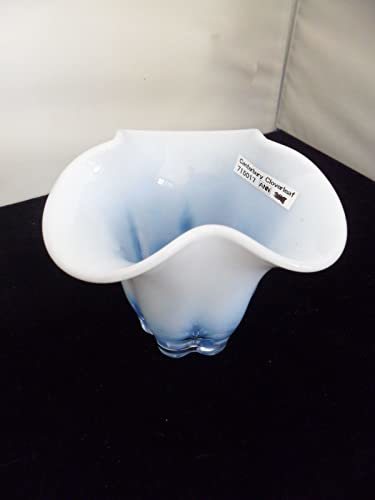 Duncan Miller Canterbury opalescent bluw vase Cloverleaf, 4" tall by 5" diam, very good condition, some light surface scratches commensurate with age [a5OPALBSKT]