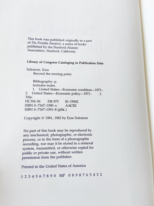 1982 HC Beyond the turning point: The U.S. economy in the 1980s by Solomon, Ezra