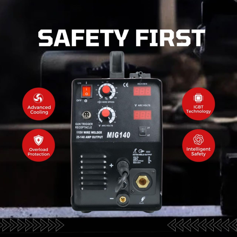 ? ??????????? ??? ????????: Start welding in seconds with automatic parameter matching using synergistic MIG settings. Fine-tune the voltage for precise control, ensuring consistent and optimal welding results.? ?????? ????????: The LOTOS MIG140 MIG Welder prioritizes safety with built-in features, including thermal overload protection and a user-friendly design, providing peace of mind during operation.