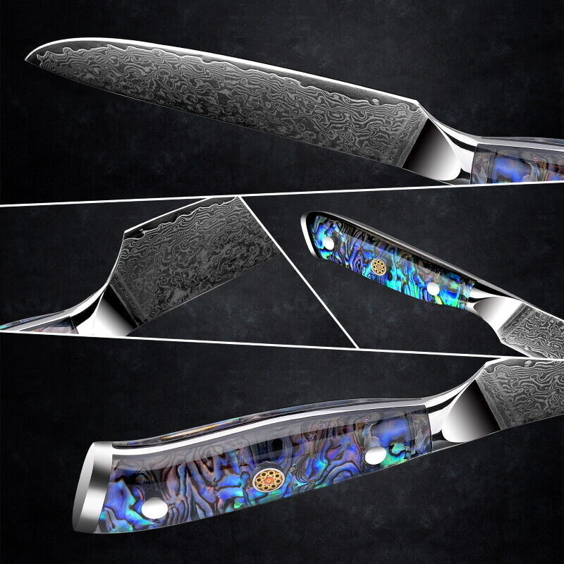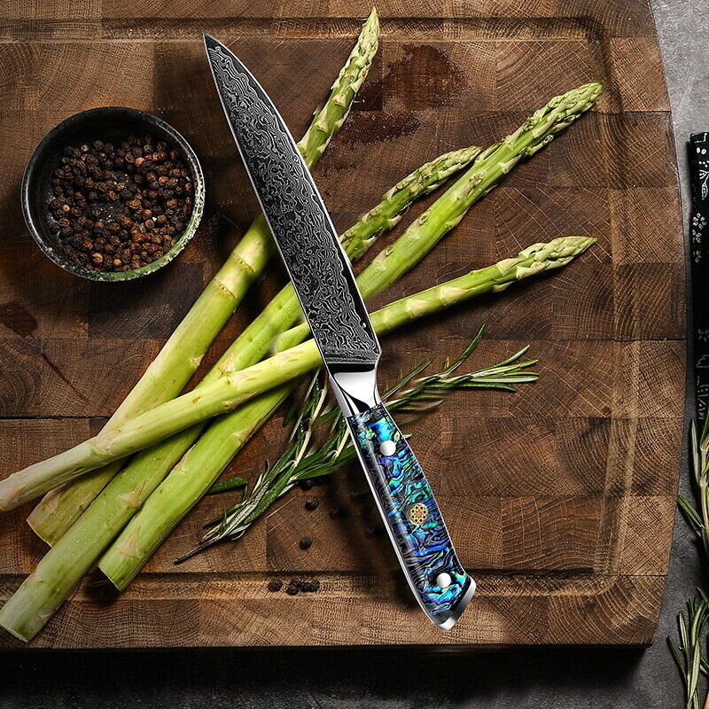 Japanese Petty Knife 6 Inch Damascus Chef Kitchen Tool Abalone Shell Handle