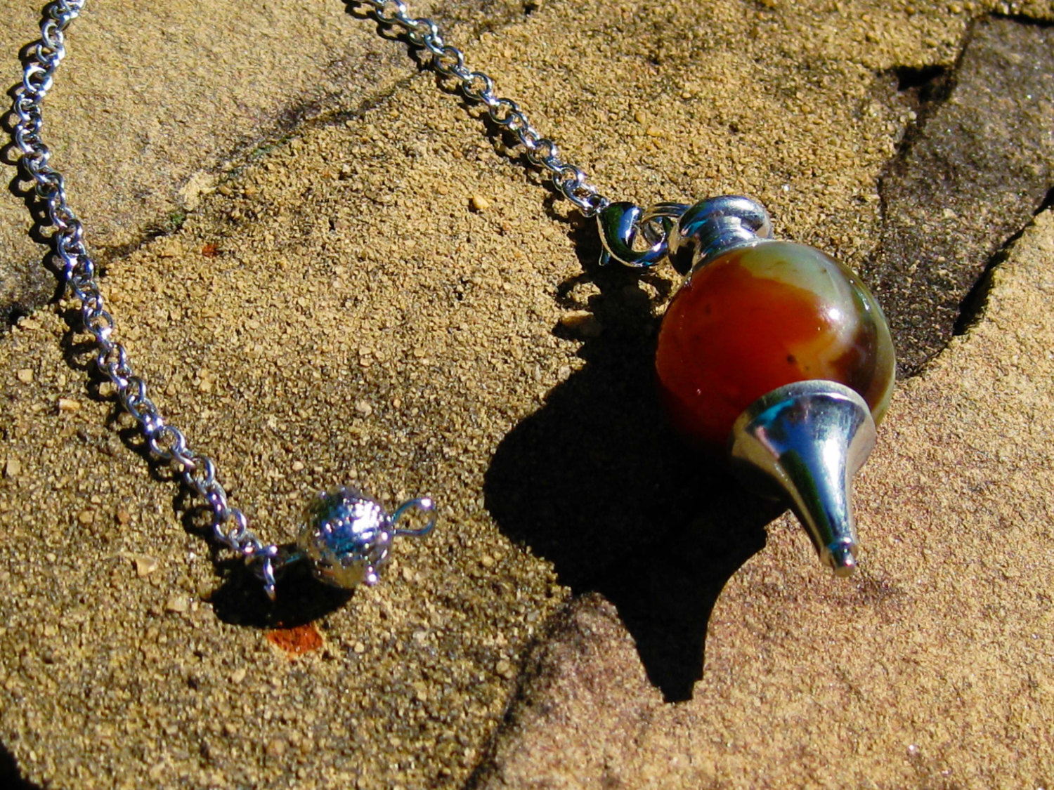 This pendulum was spell cast to channel universal energy. It will enhance your thoughts, as they are a form of energy. Because it directs and amplifies energy, it is extremely beneficial for manifesting, healing, meditation, protection, and channeling. It is also beneficial for storing and retrieving information of all types, as information is a form of energy pattern also. This makes them particularly good for programming. Due to its ability to balance, this pendulum is excellent for harmonizing and balancing one's environment