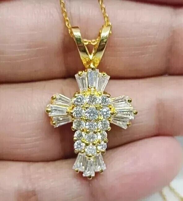 2Ct Baguette Cut Lab-Created Diamond Cross Pendant 14K Yellow Gold Plated