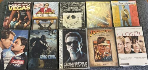 Enjoy a great collection of 40 movies on DVDs, featuring a variety of actors, directors, and genres. This mixed lot includes action, adventure, drama, and comedy films in both full screen and widescreen formats. With additional scenes and various ratings, these DVDs are perfect for any movie lover's collection.