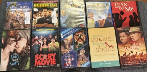 Enjoy a great collection of 40 movies on DVDs, featuring a variety of actors, directors, and genres. This mixed lot includes action, adventure, drama, and comedy films in both full screen and widescreen formats. With additional scenes and various ratings, these DVDs are perfect for any movie lover's collection.