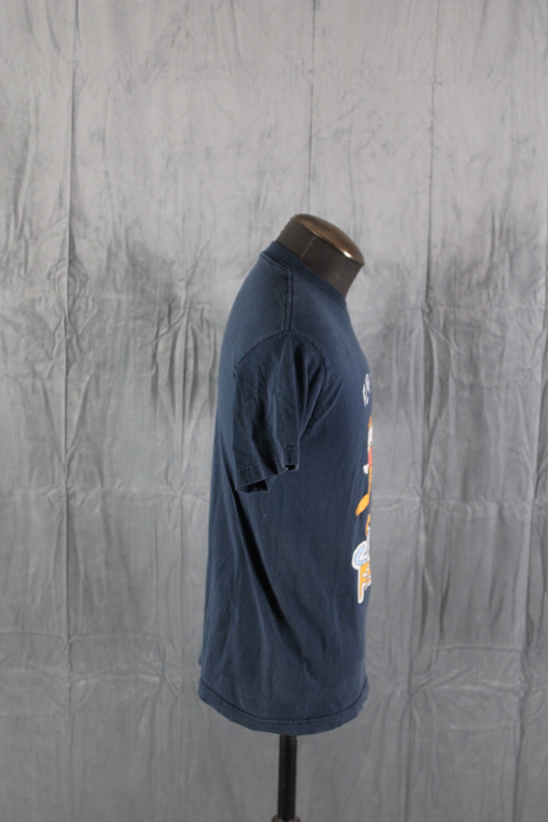 This shirt is in good condition. There is minor cracking to the graphic on the shirt. Please see the images for your reference.