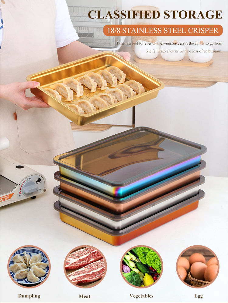 Anygleam Pink Rainbow 1Pc Food Grade Stainless Steel Crisper Box Food Storage wi