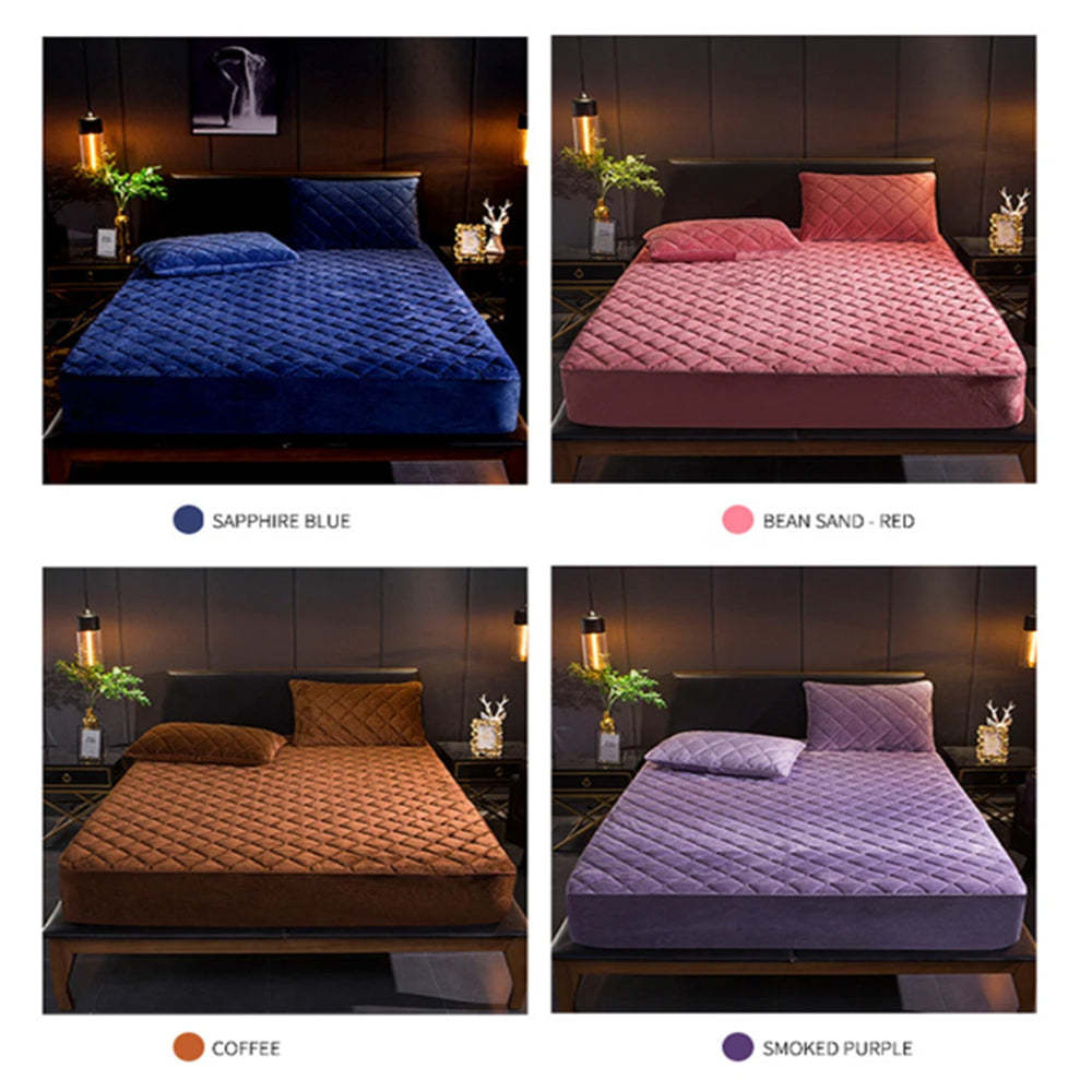 Anyhouz Mattress Cover Gray 140x200cm Crystal Velvet Thicken Quilted Warm Soft P