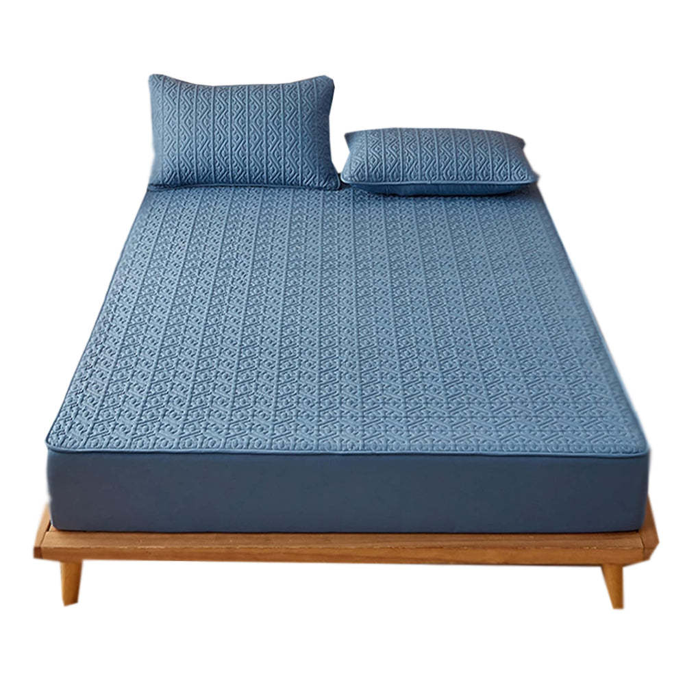 Anyhouz Mattress Cover Blue 160x200cm Pure Cotton Soft Quilted Bed Sheet Anti-ba