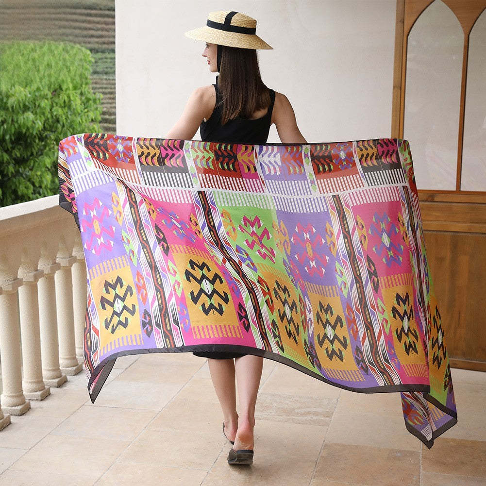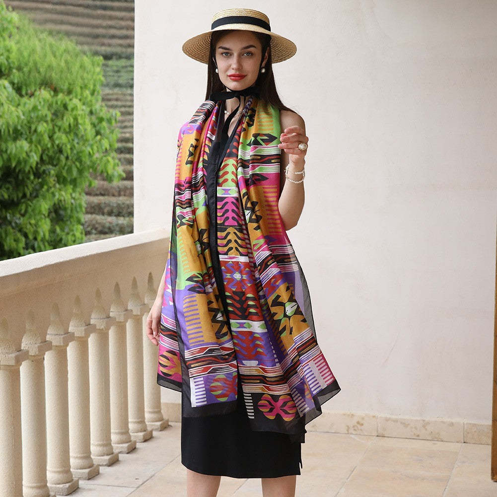 Anyyou 100% Mulberry Silk Multicolor Long Scarf Luxury Brand Women Beach Shawl W