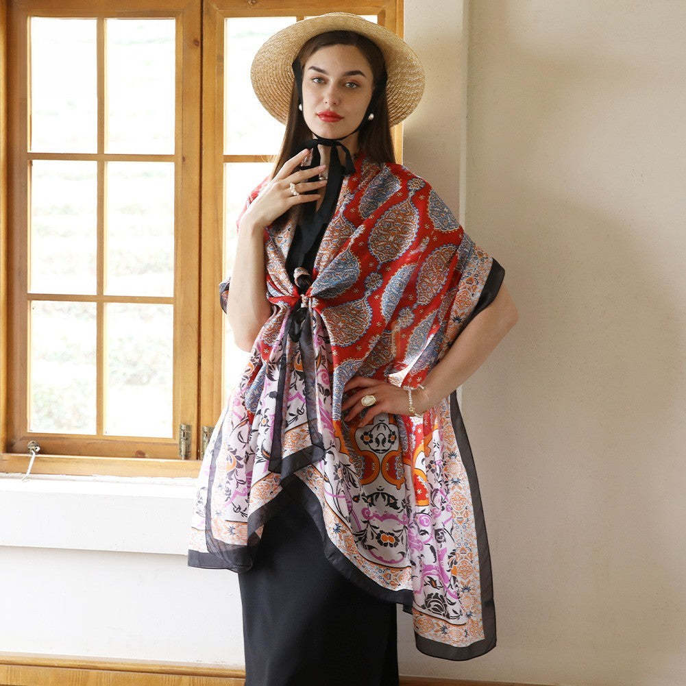 Anyyou 100% Mulberry Silk Rose Red Long Scarf Luxury Brand Women Beach Shawl