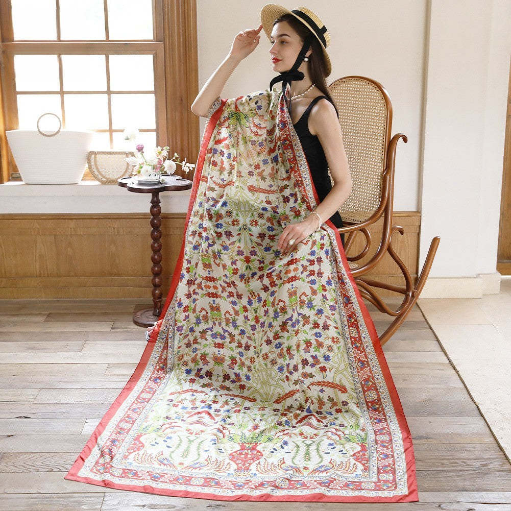 Anyyou 100% Mulberry Silk Red Green Long Scarf Luxury Brand Women Beach Shawl We